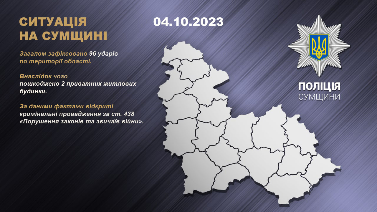 Протягом минулої доби окупанти знову обстрілювали населені пункти області. Загалом нараховано 96 ударів.