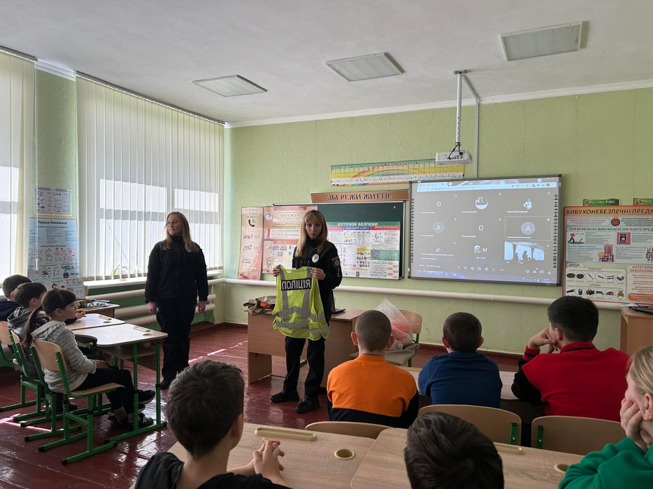 Під час профілактичних заходів у школах Садів, Голубівки та Миколаївському ліцеї, інспектори поліції розповіли дітям про правила безпеки поблизу проїзних частин, як правильно переходити дорогу на нерегульованих пішохідних переходах тощо.