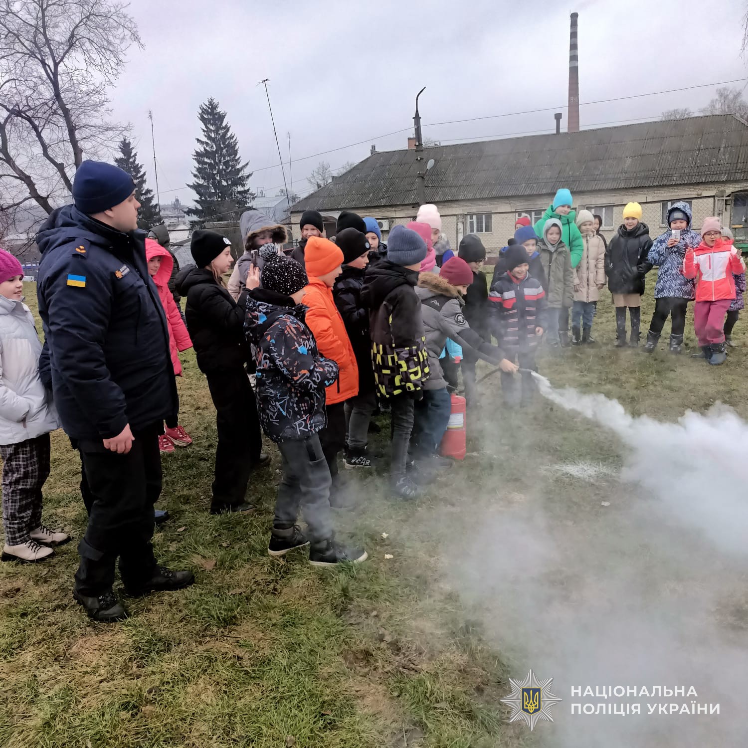 Крім того, на подвір’ї ліцею представники державних служб наочно показали як правильно користуватися вогнегасником, а також ознайомили дітлахів зі спеціальними засобами поліцейського. Заходи з практичною складовою дозволяють дітям краще запам’ятовувати отримані під час заняття знання, тож діти залишилися задоволеними змістовно проведеним уроком з безпеки.