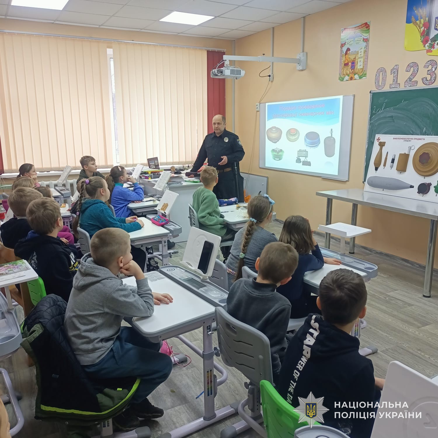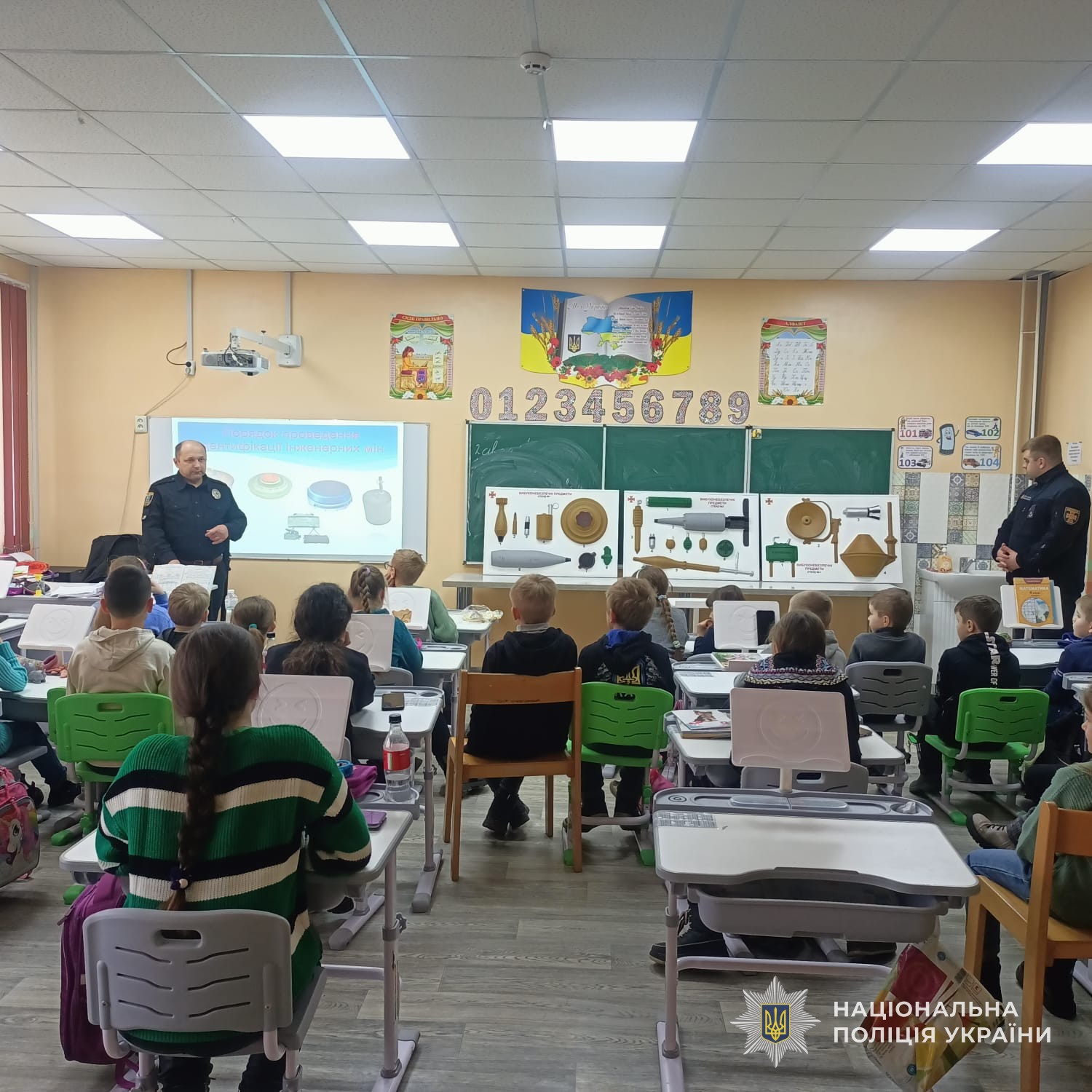Сьогодні до Бездрицького ліцею Сумського району завітали інспектори відділення поліції № 4 (м. Суми) Сумського районного управління поліції та рятувальник. Для учнів молодших класів цього навчального закладу гості продемонстрували стенди з вибухонебезпечними предметами та розповіли про їх дію. Зокрема, наголосили на тому, як поводити себе якщо знайшли небезпечну знахідку та що робити в такому випадку.
