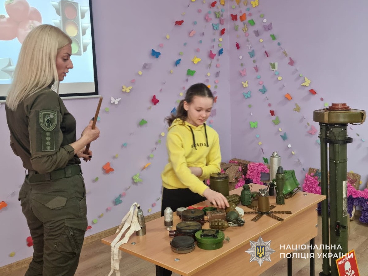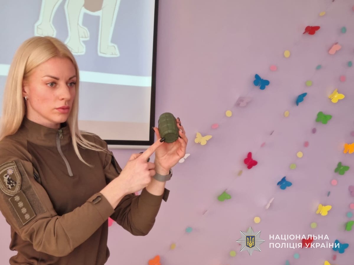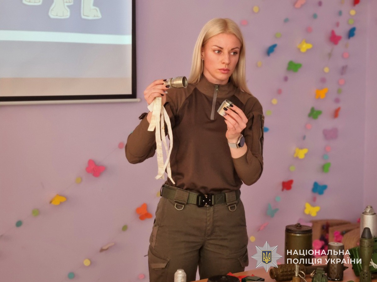 Поліцейська ознайомила дітей з розповсюдженими видами боєприпасів та вибухівки, на які можуть натрапити діти. Також, розповіла про дії при виявленні таких небезпечних знахідок. Зокрема про те, що не можна ні в якому випадку наближатися, рухати, підіймати з землі знайдені боєприпаси, їх частини та елементи, або інші підозрілі предмети. Це може бути вкрай небезпечно!