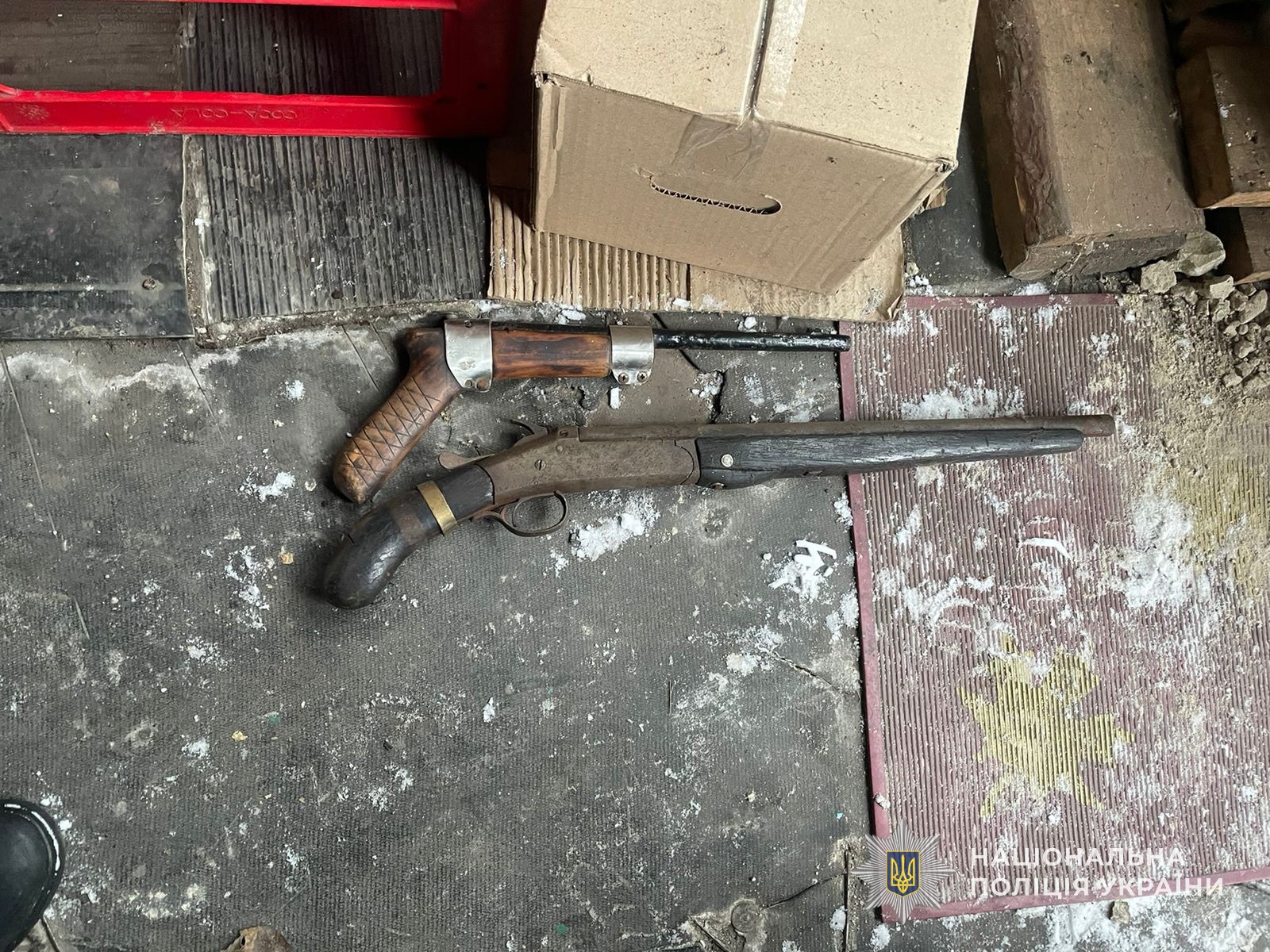 У ході санкціонованого обшуку домоволодіння 61-річного мешканця с. Верхня Сироватка, правоохоронці виявили саморобний пістолет, обріз рушниці та п’ять мінометних мін калібром 50 та 82 міліметри.