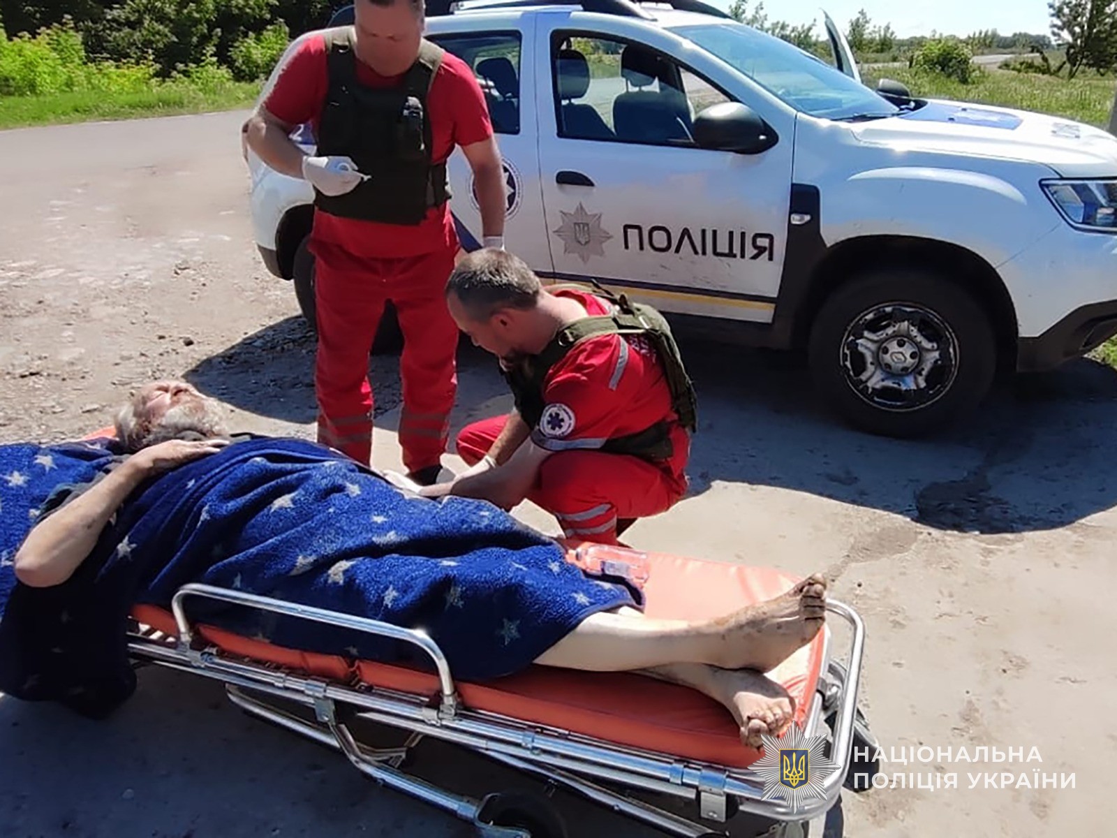 На місці вони виявили самотнього чоловіка у безпорадному стані — він був виснажений і не міг самостійно пересуватися. Розуміючи критичність ситуації, офіцер негайно викликав швидку допомогу. Проте через безпекову ситуацію оператор екстреної служби 103 попросив транспортувати чоловіка в безпечніше місце для зустрічі з медиками.