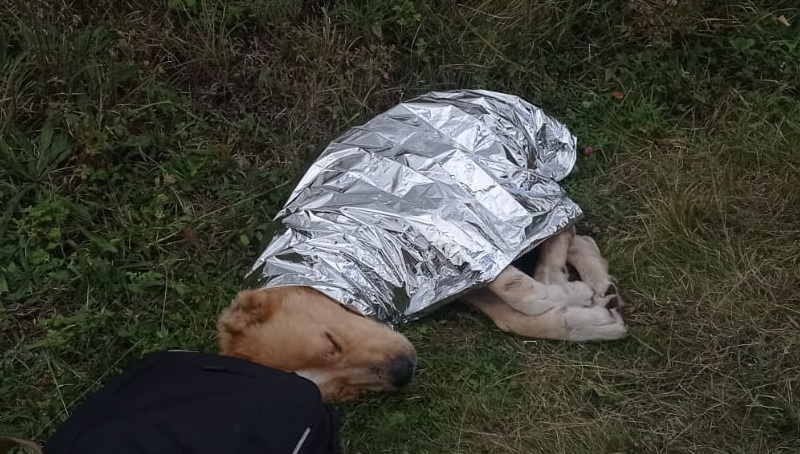 На допомогу їм прийшов дільничний офіцер поліції Олександр Шинкаренко. «Тварина була виснажена, її трясло, скоріш за все вона блукала околицями вже не перший день, можливо над нею знущались, бо вона поводилась агресивно», – розповідає правоохоронець. І хоча собака не була контактною, Олександр зміг її нагодувати та вкрити медичною термоковдрою.