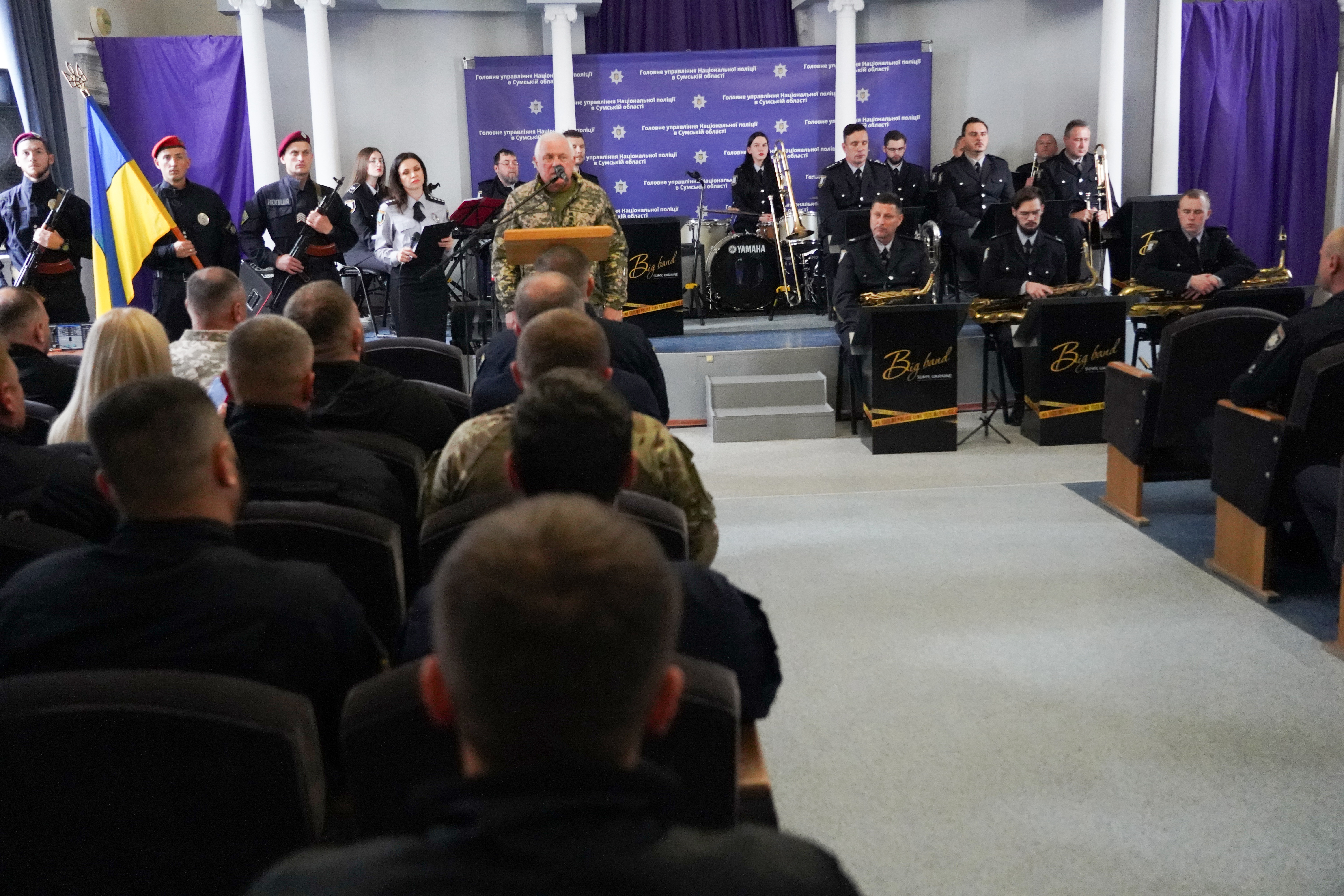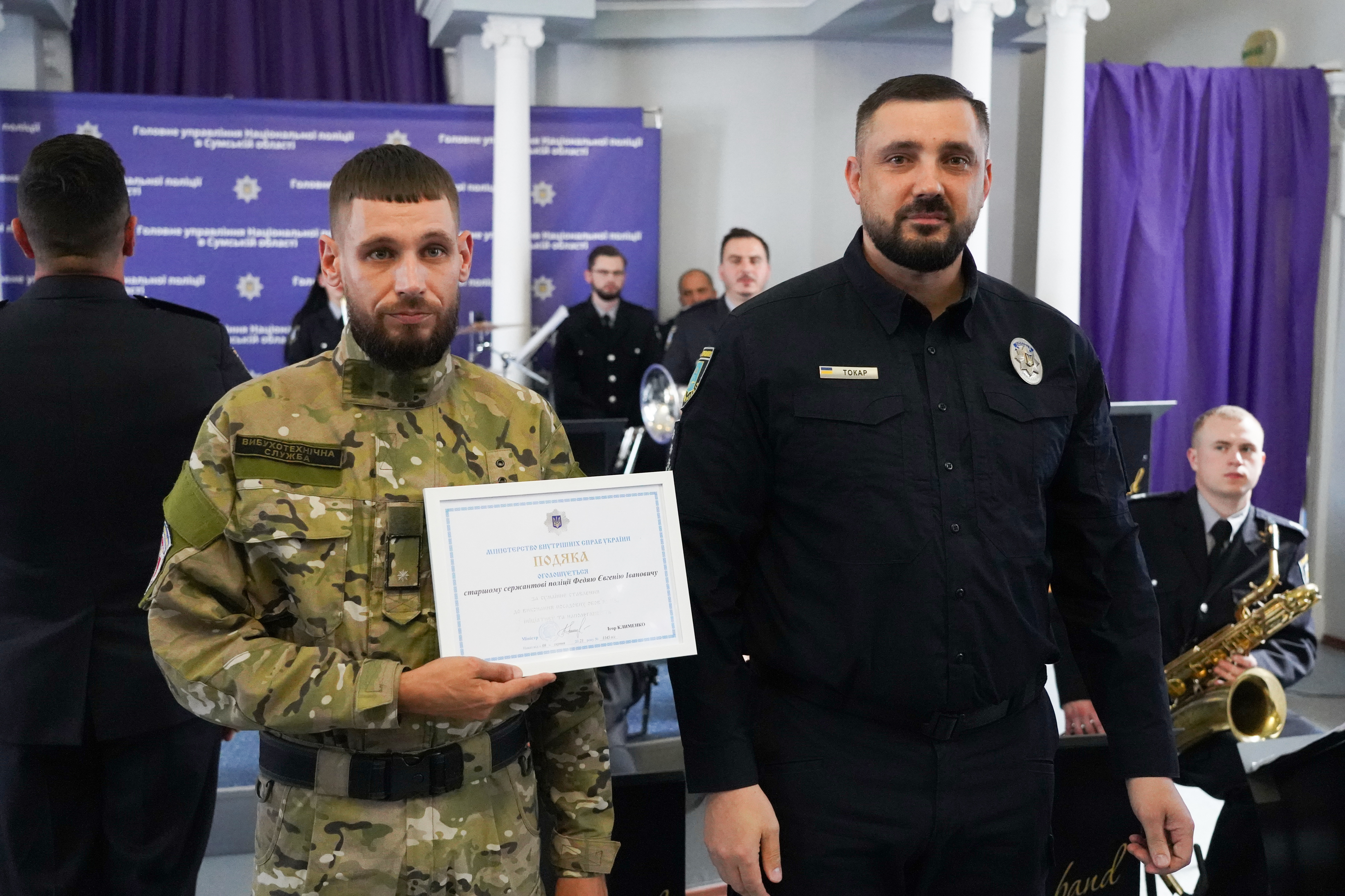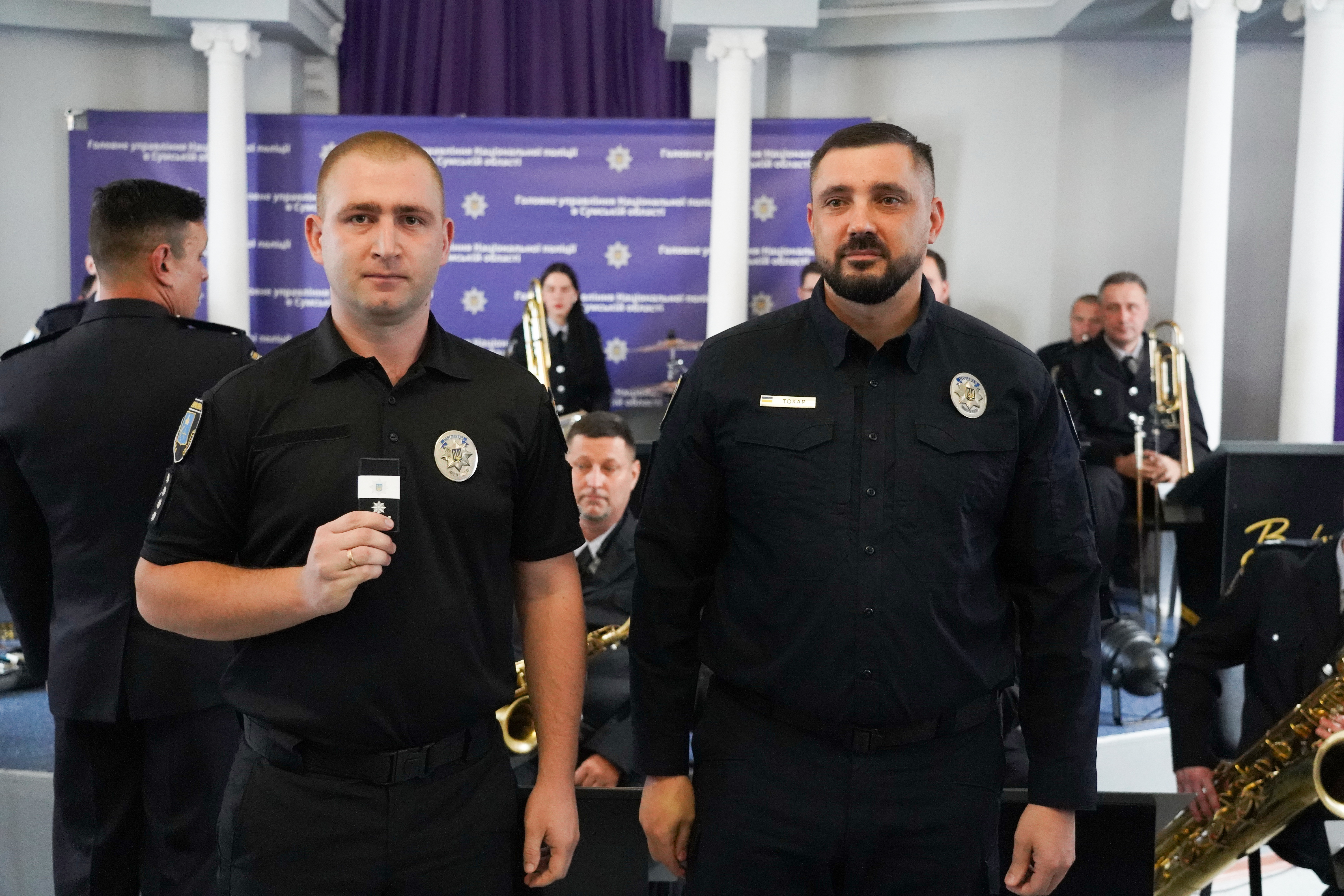 До заходів долучились голова Сумської обласної військової адміністрації Володимир Артюх, командир оперативно-тактичного угруповання «Суми» Василь Осипчук та міський голова Олександр Лисенко. Гості привітали поліцейських та нагородили почесними грамотами, пам’ятними знаками, подяками.