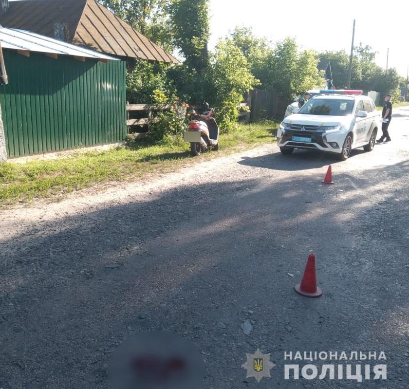 Подія сталася вчора, 7 липня, у селі Собич на Шосткинщині. Водій скутера не впорався з керуванням та впав. Внаслідок дорожньої аварії чоловік отримав тілесні ушкодження і був доставлений до лікарні у тяжкому стані.
