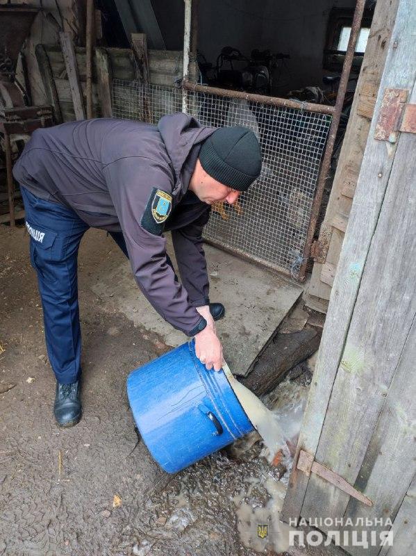 Сто двадцять п’ять літрів самогону, 60 літрів закваски та самогонні апарати вилучити та знищили поліцейські у жителів Конотопського району.