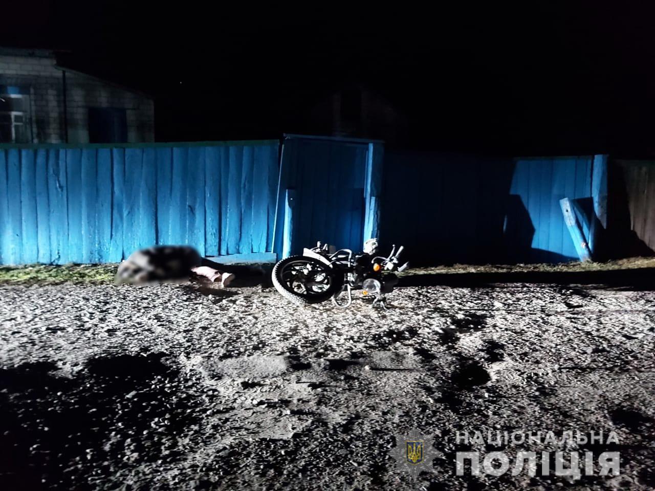 Як попередньо встановили працівники поліції, 56-річий місцевий чоловік, перебуваючи за кермом мотоцикла Вайпер Мустанг злетів у кювет, після чого допустив зіткнення зі стовпом воріт приватного будинку. Від отриманих травм водій помер на місці події.