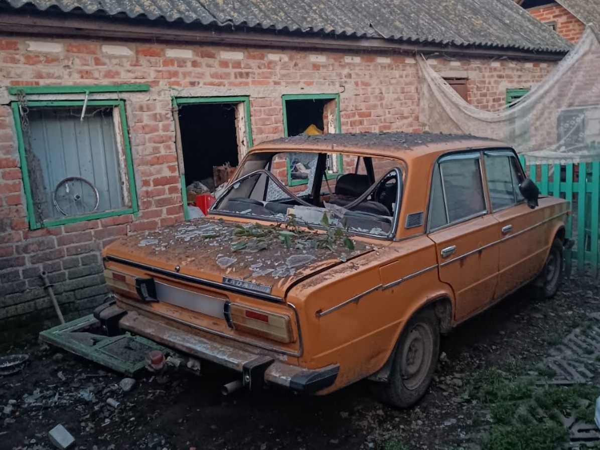 Внаслідок чого поранено 2 цивільні особи, пошкоджено 9 житлових будинків, будівлю агрофірми, авто, трактор та лінії електромереж.