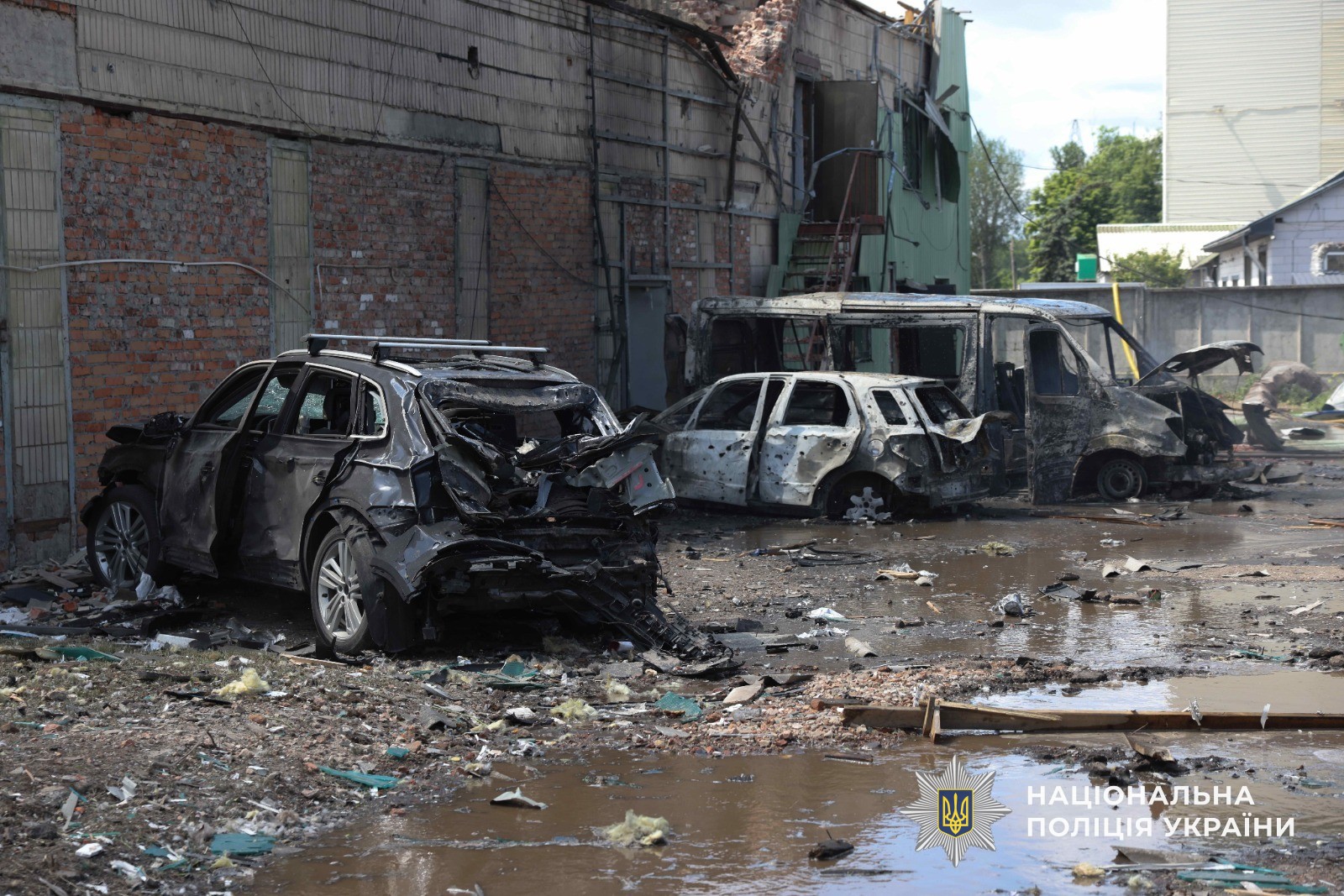 Унаслідок атак пошкоджено щонайменше 4 автівки, складські приміщення, адміністративні та господарські будівлі, станції технічного обслуговування автомобілів, магазини та лінії електропередач. Поліція ретельно фіксує всі пошкодження та збирає речові докази.