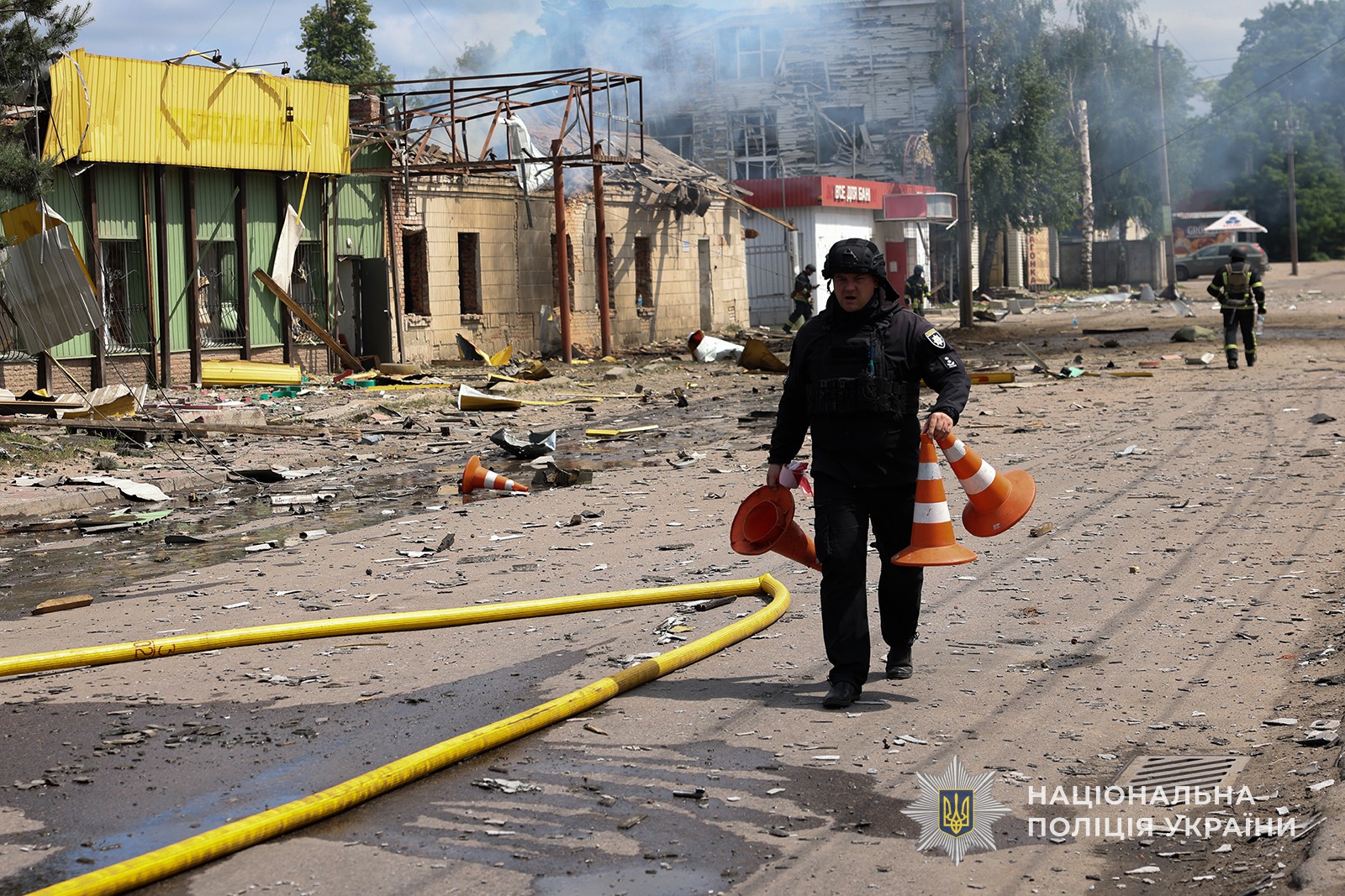 Поліцейські оперативно прибули на місце події, забезпечили охорону території та разом з іншими службами зафіксували наслідки обстрілу.
