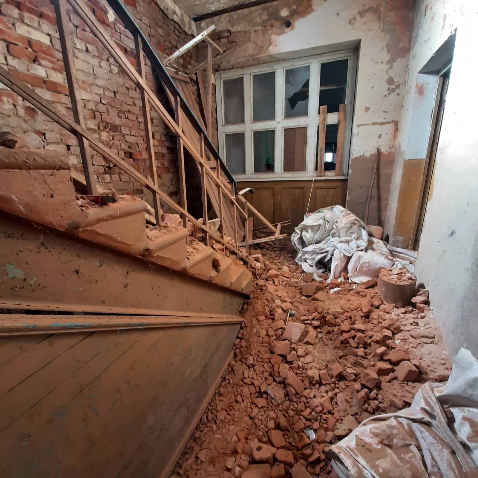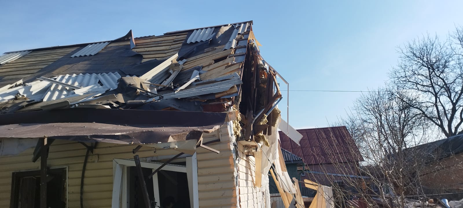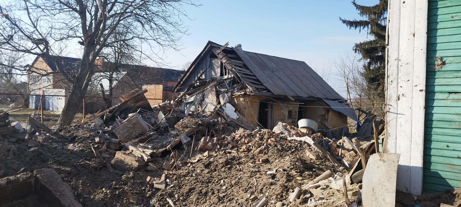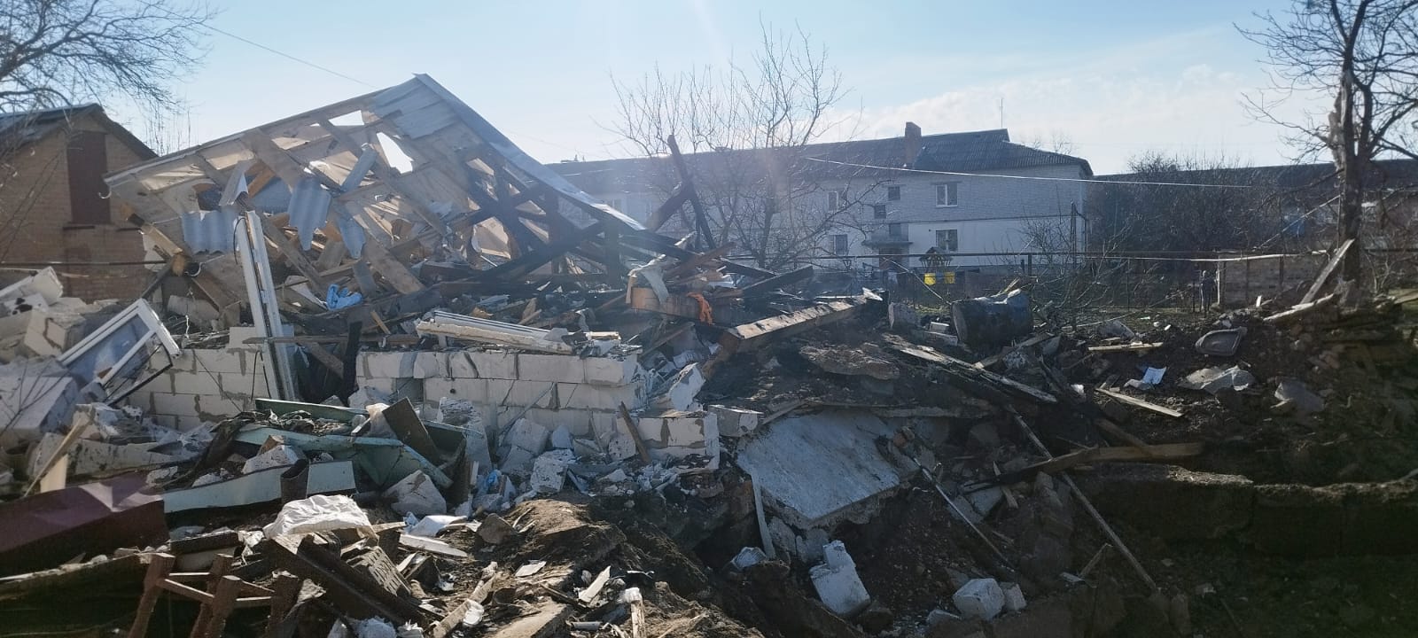 Внаслідок чого пошкоджено 7 багатоквартирних будинків, 11 приватних домоволодінь, будинок культури, дитячий майданчик, приміщення ліцею, церкви та лінію електропередач.