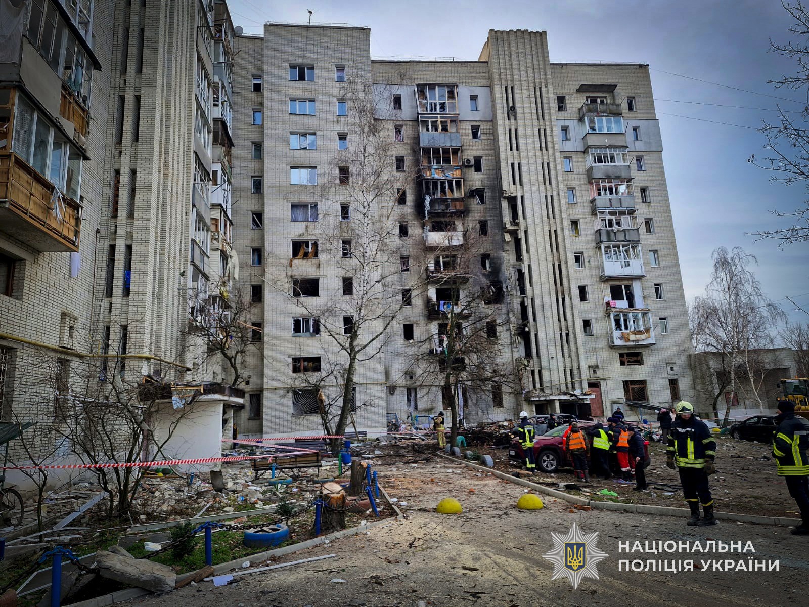 Також на місцях продовжують роботу слідчо-оперативні групи поліції, які фіксують наслідки обстрілу, здійснюють фото- та відеодокументування руйнувань, приймають заяви від громадян та оформлюють матеріали в рамках кримінального провадження за фактом порушення законів і звичаїв війни.