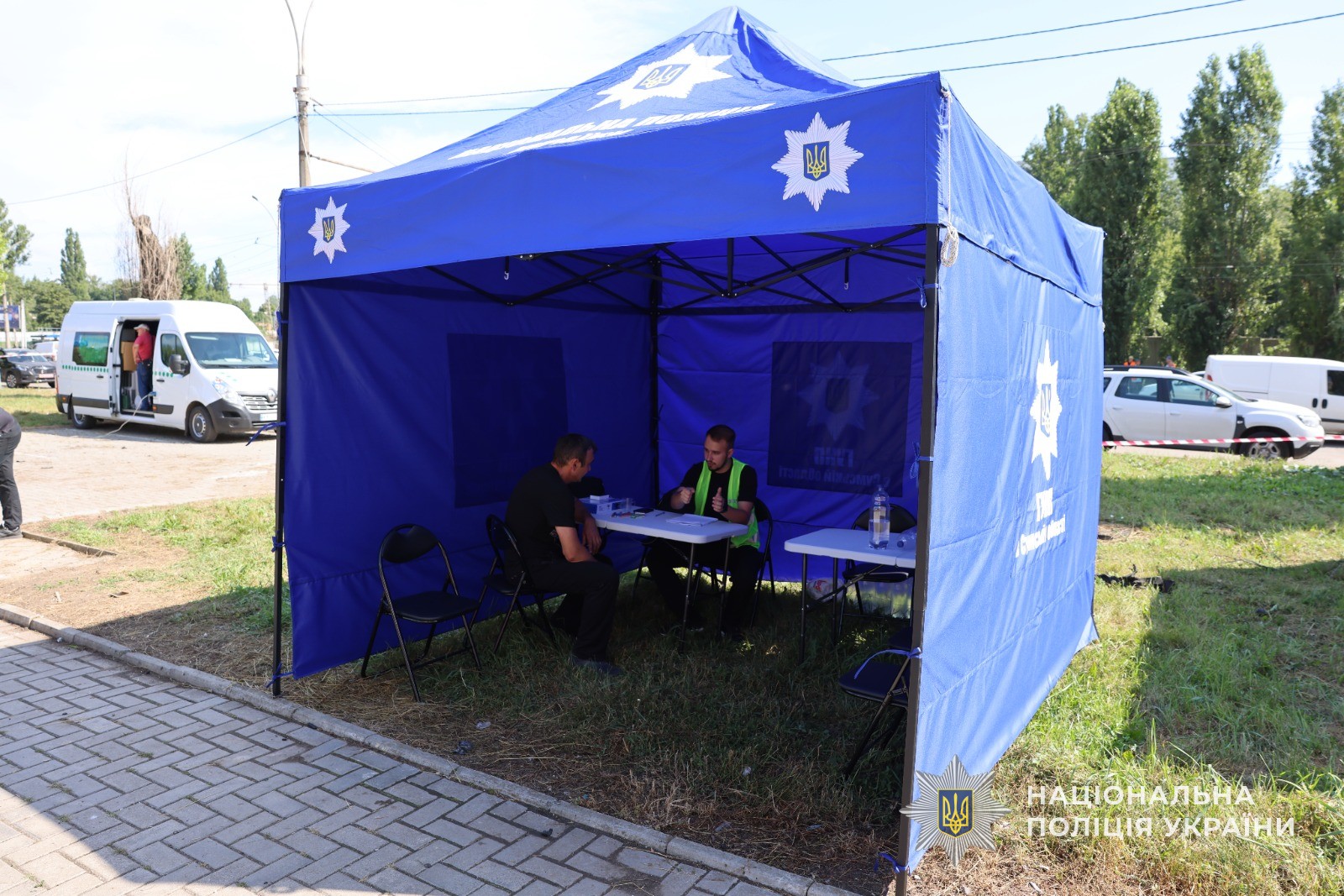 Поліцейські документують наслідки обстрілу, забезпечують охорону громадського порядку та допомагають мешканцям. Правоохоронці вже прийняли близько 50 заяв від громадян, чиє житло, транспорт чи інше майно зазнали пошкоджень, проте люди продовжують звертатись до поліції.