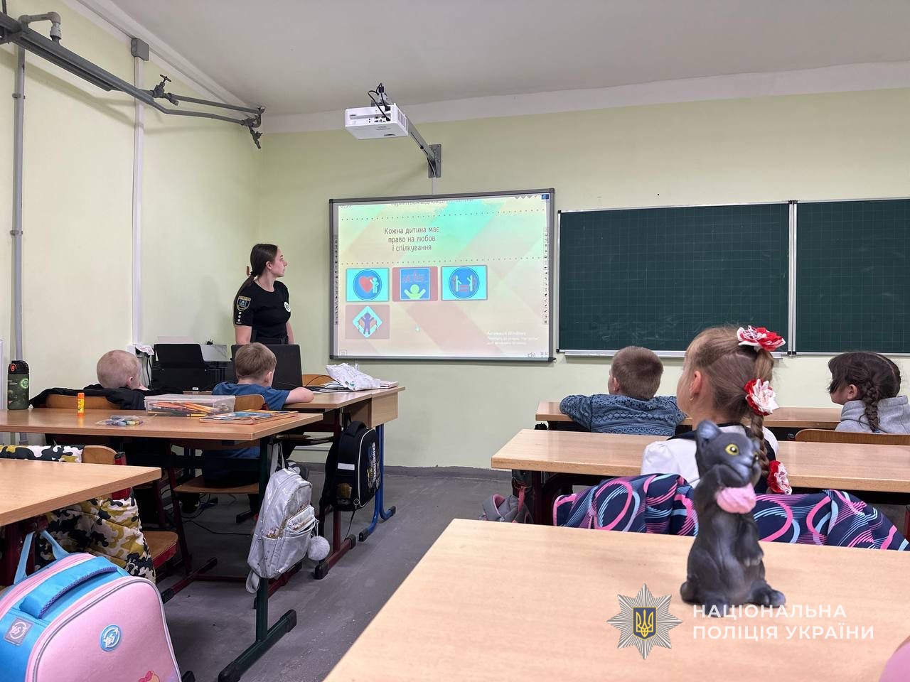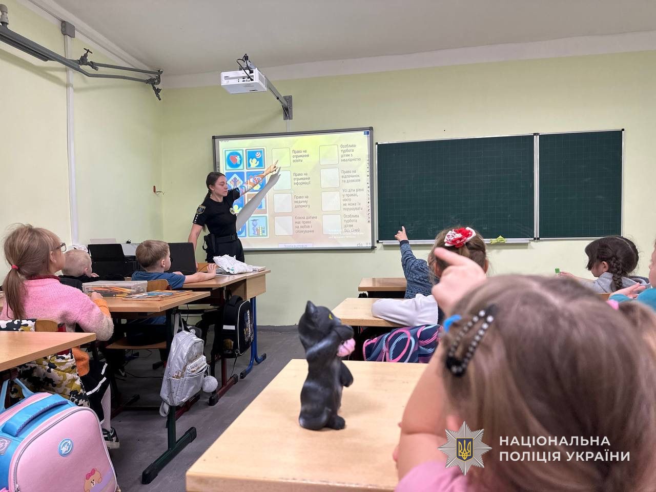 Офіцер Служби освітньої безпеки провела для учнів однієї зі шкіл міста інтерактивне заняття про права людини та обов’язки громадянина. Обговорили, що таке право, хто його захищає, як діяти у разі порушення й чому кожне право пов’язане з особистою відповідальністю.