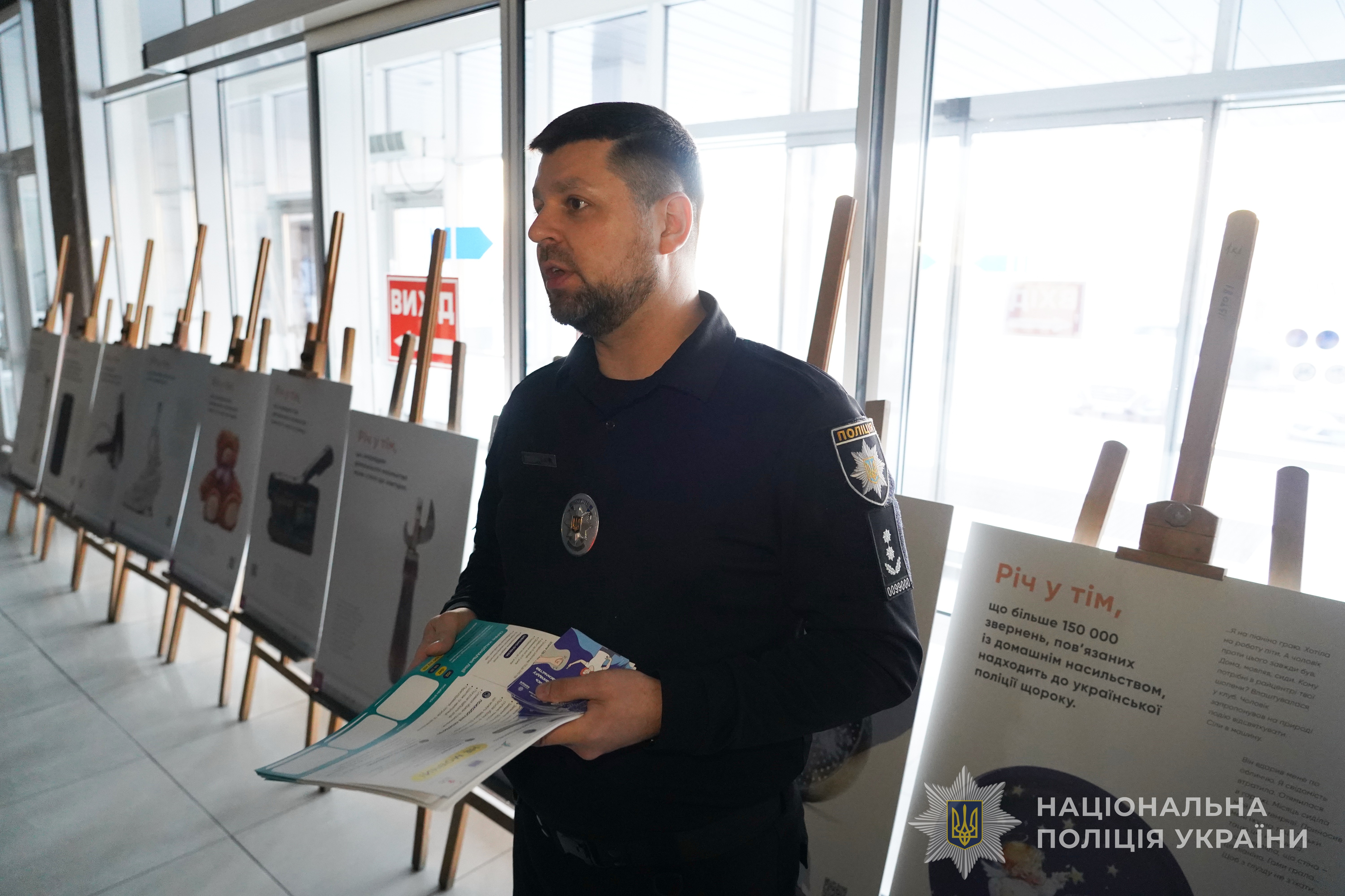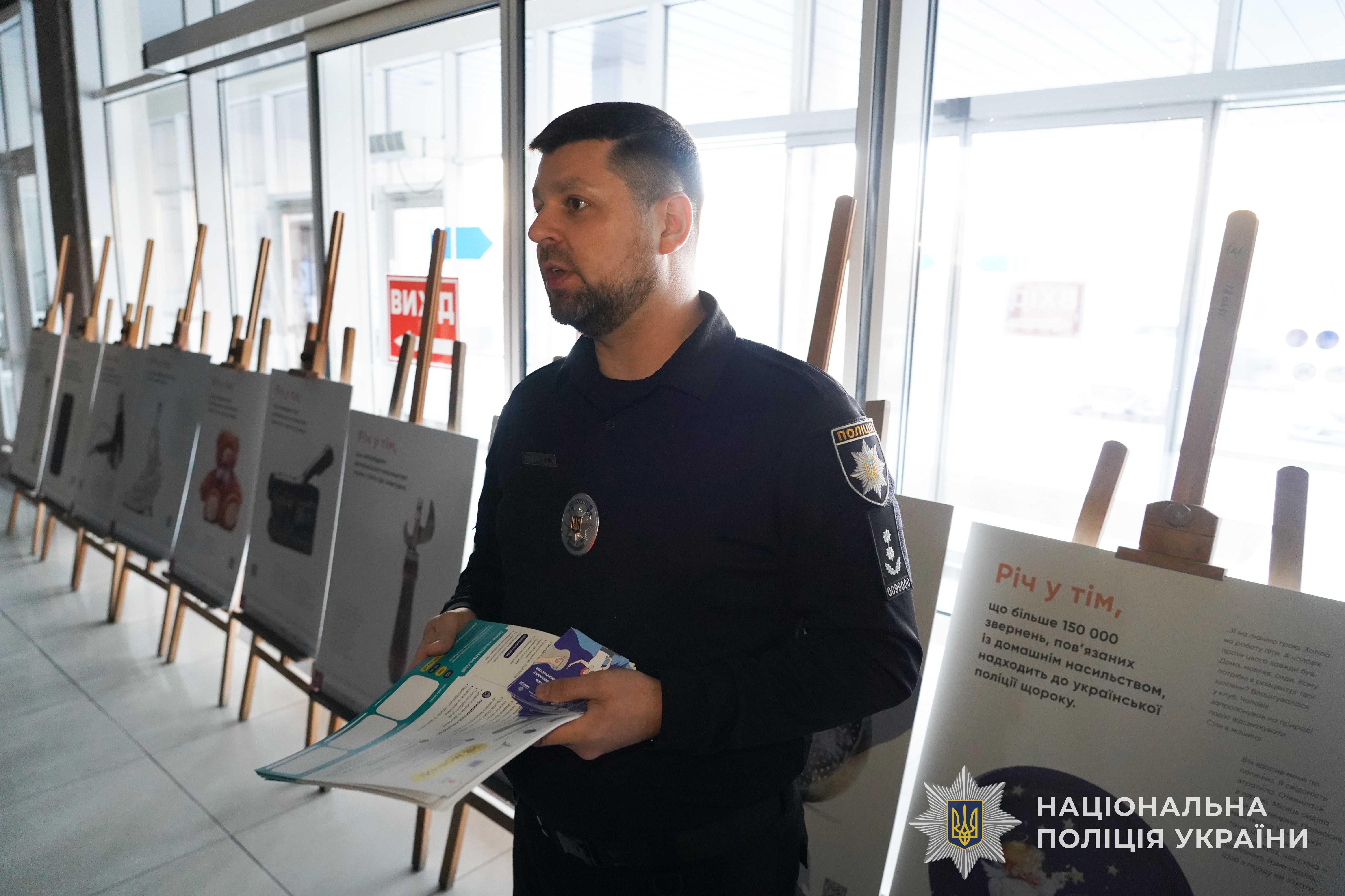 У одному з торгівельних центрів міста Суми представники поліції розгорнули для відвідувачів виставку плакатів під назвою «Річ у тім».