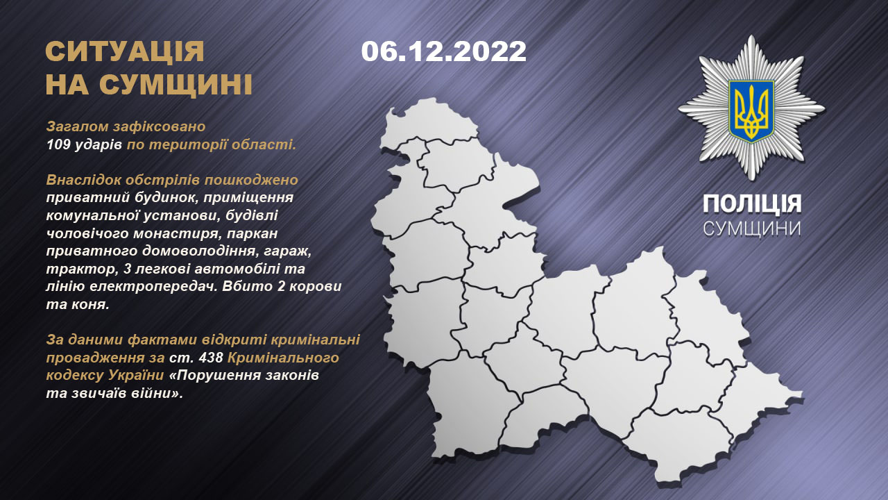 Поліція Сумщини фіксує наслідки обстрілів області військами рф