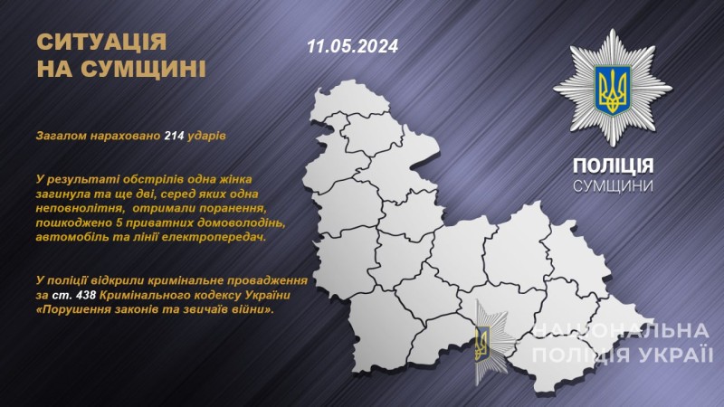 Протягом минулої доби окупанти обстріляли 24 населені пункти Сумської області. Загалом нараховано 214 ударів.