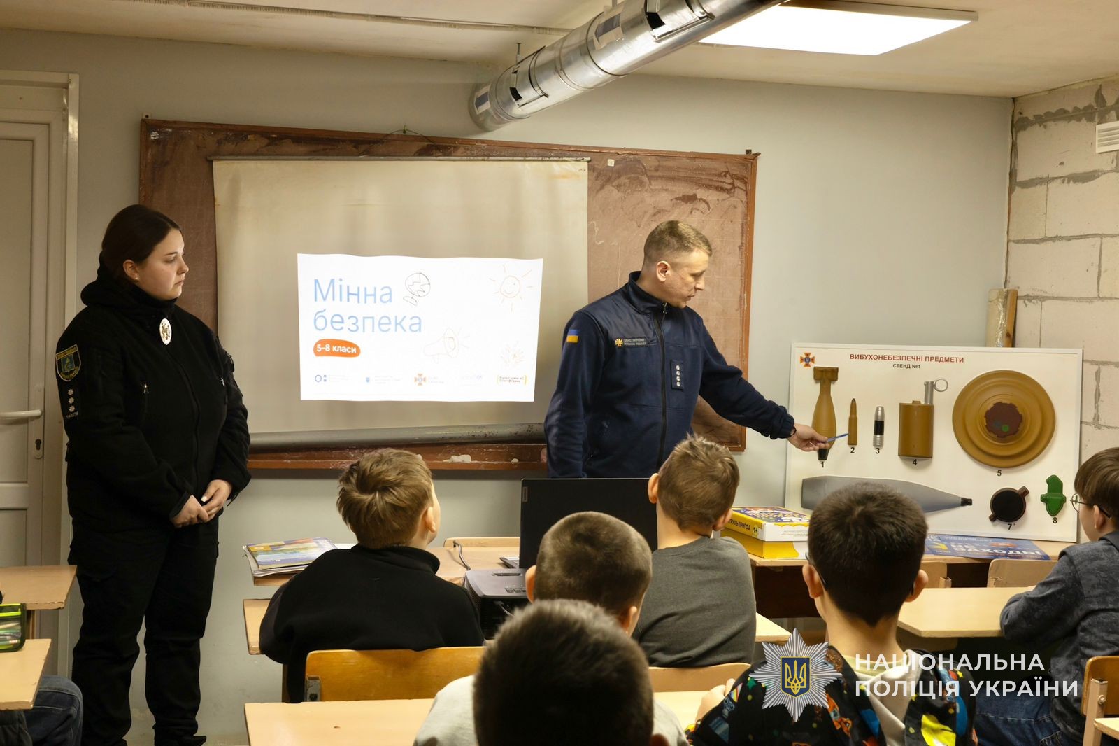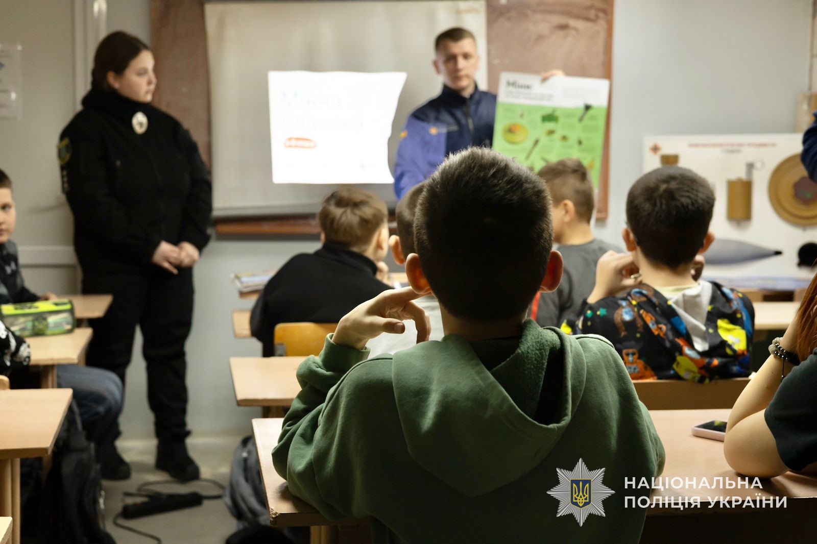 Під час занять офіцери Служби освітньої безпеки у доступній формі пояснювали школярам, як можуть виглядати вибухонебезпечні предмети, чому їх категорично не можна чіпати та який алгоритм дій необхідно запам’ятати: не підходити, не торкатися, відійти на безпечну відстань і повідомити дорослих або відповідні служби.