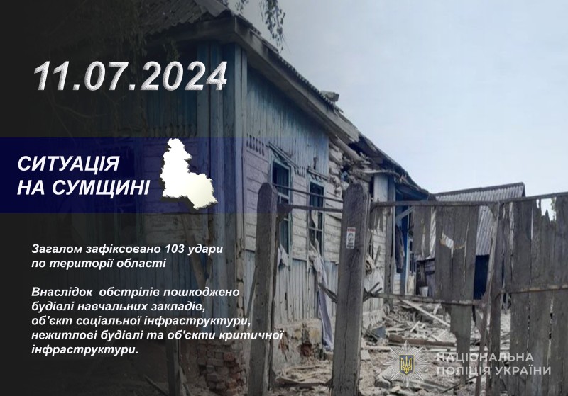 Протягом минулої доби окупанти атакували 19 населених пунктів Сумської області. Загалом нараховано 103 удари.
