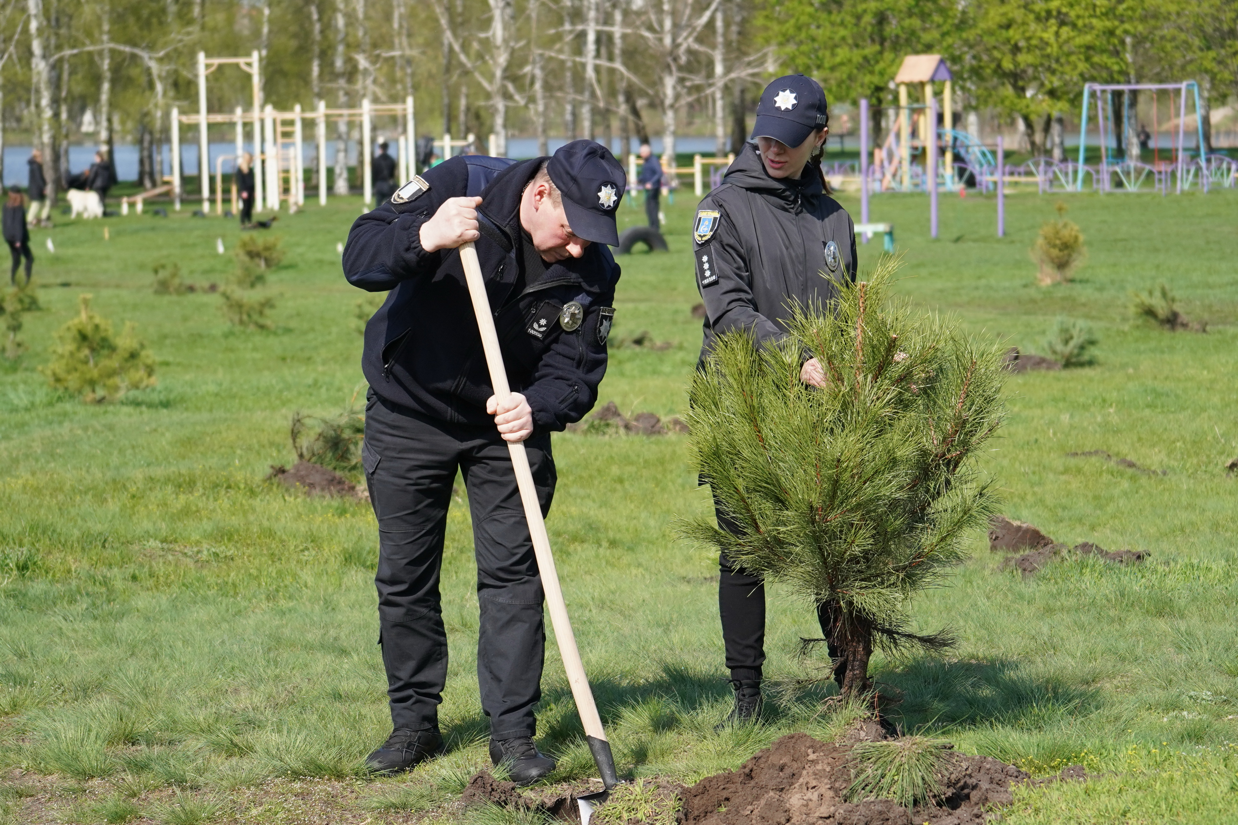 За запрошенням ініціативної благодійної організації «Озеленення України» правоохоронці долучилися до еко-акції з озеленення міста.