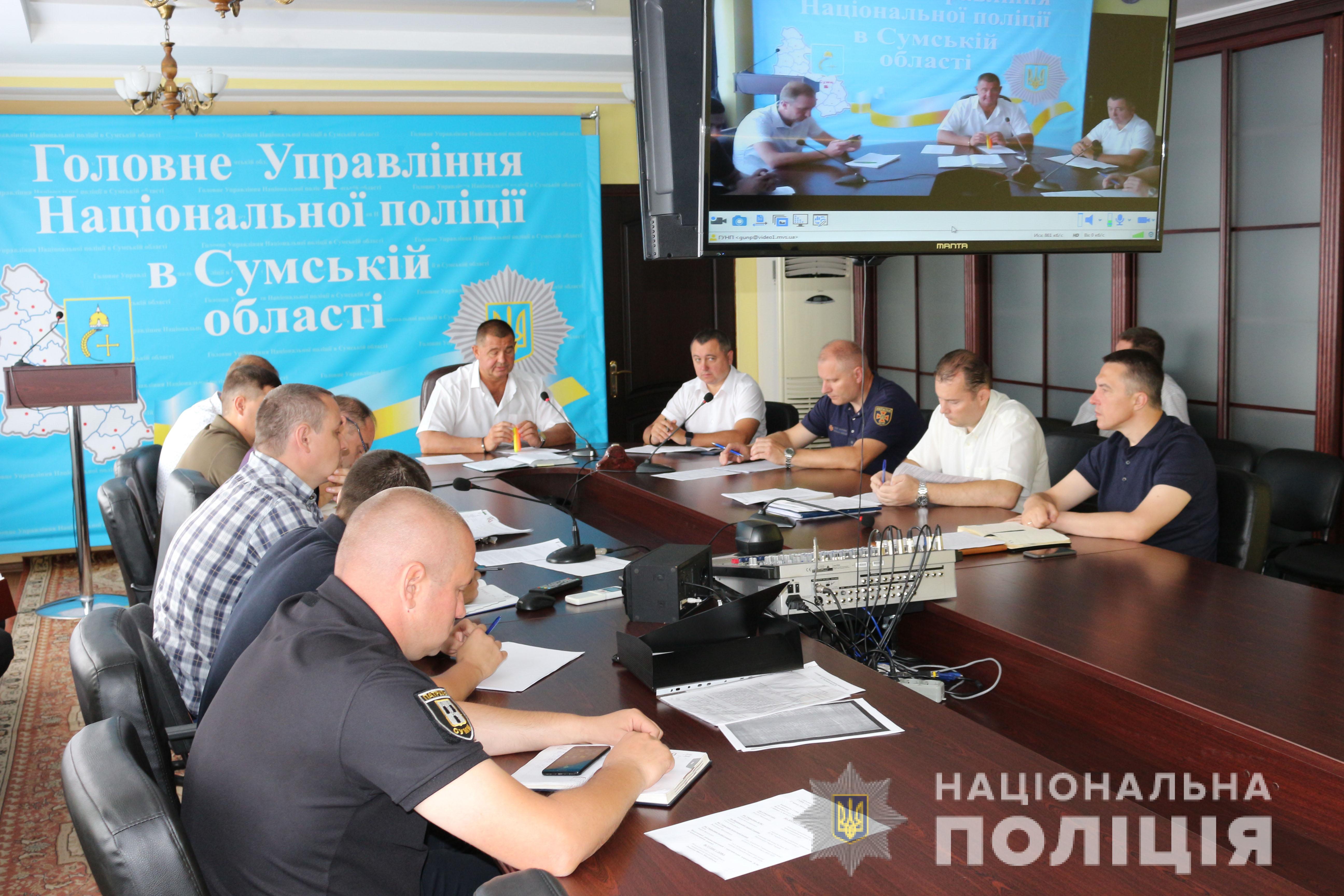 На інструктивній відео селекторній нараді за участі керівництва ГУНП області, начальників відділів та відділень поліції на місцях ,представників Сумської ОДА та інших правоохоронних структур області, громадських активістів, що відбулась сьогодні в Головному управлінні поліції, обговорили заходи та методи забезпечення громадського правопорядку .