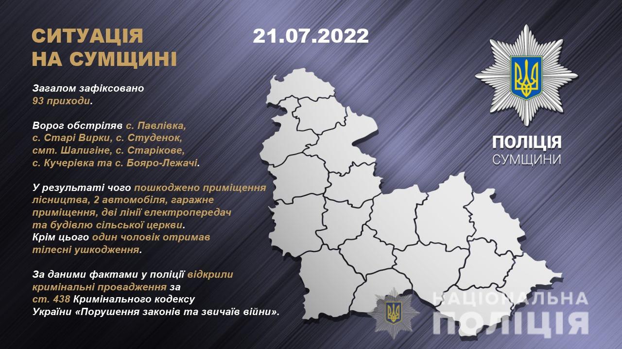 Учора війська рф здійснили обстріли Сумського, Шосткинського та Конотопського районів. Загалом нараховано 93 приходи.