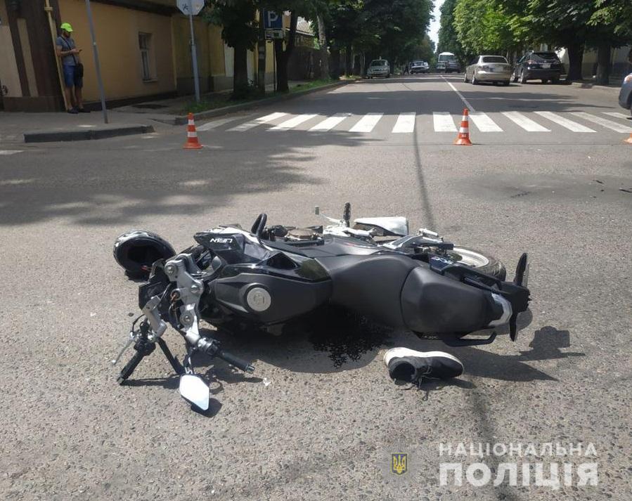 В результаті чого водія мотоцикла, з тілесними ушкодженнями, госпіталізовано до лікарні.