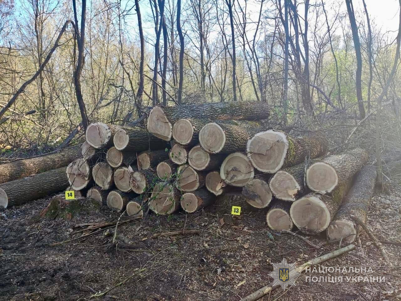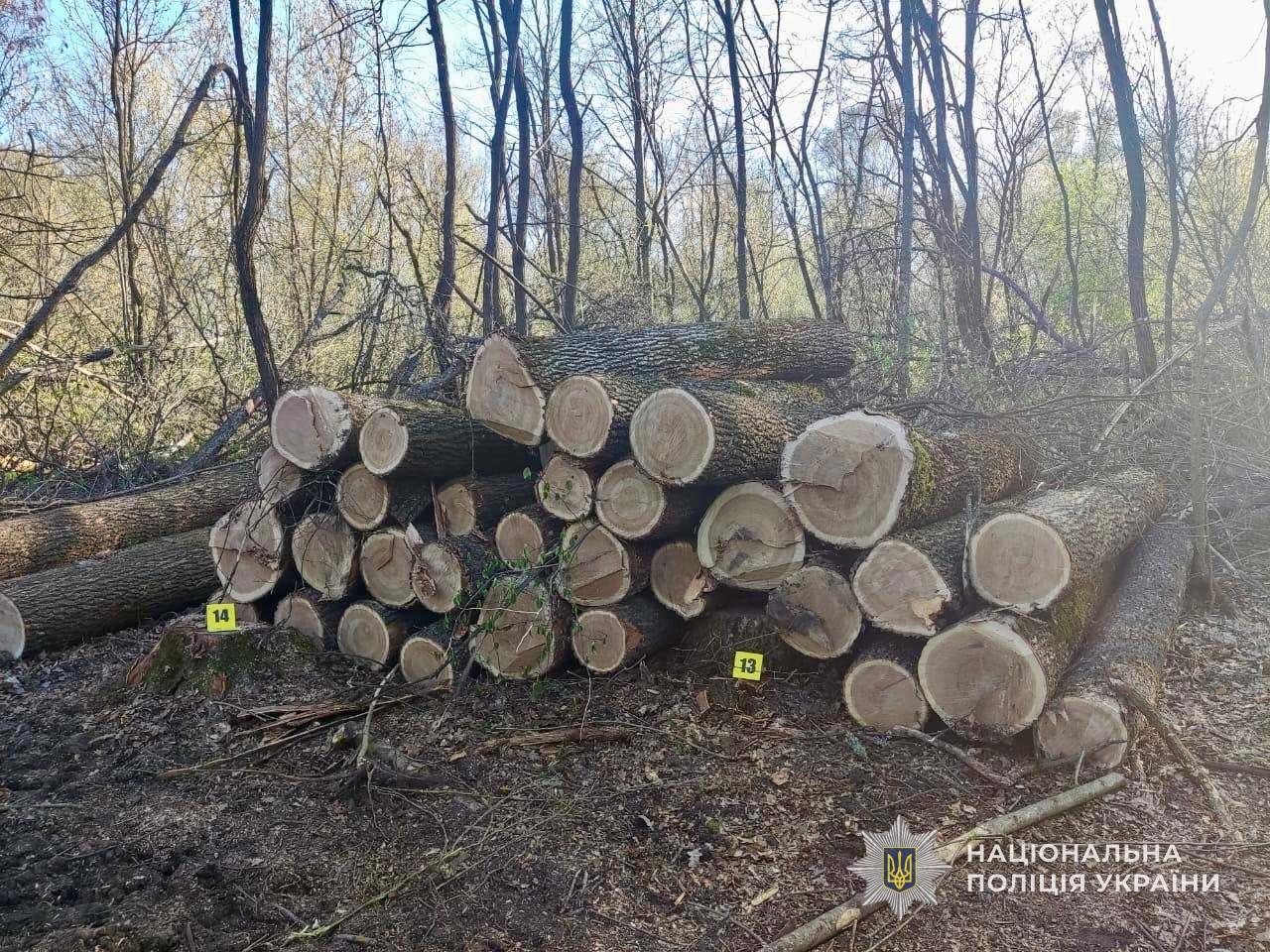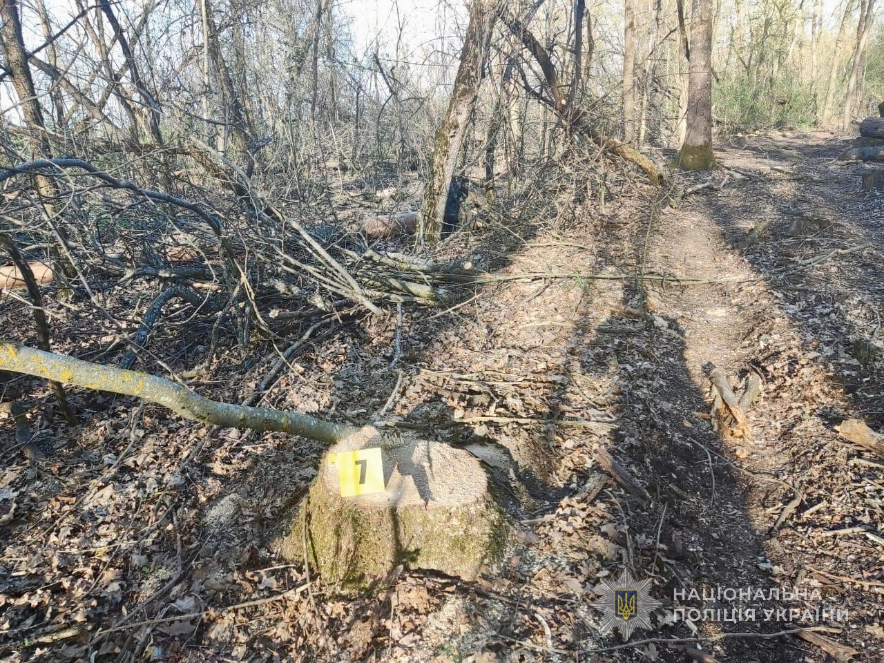 У ході досудового розслідування слідчі поліції встановили, що у квітні поточного року, троє чоловіків, діючи за попередньою змовою, знаходячись разом на території лісу, не маючи дозволу на порубку, за допомогою бензопил спиляли 57 дерев породи дуб сироростучий, а також 1 дерево породи ясень.