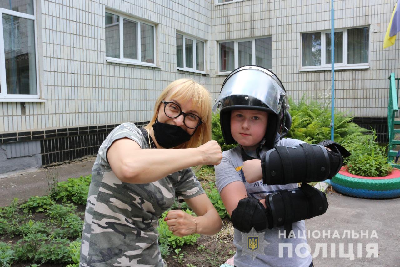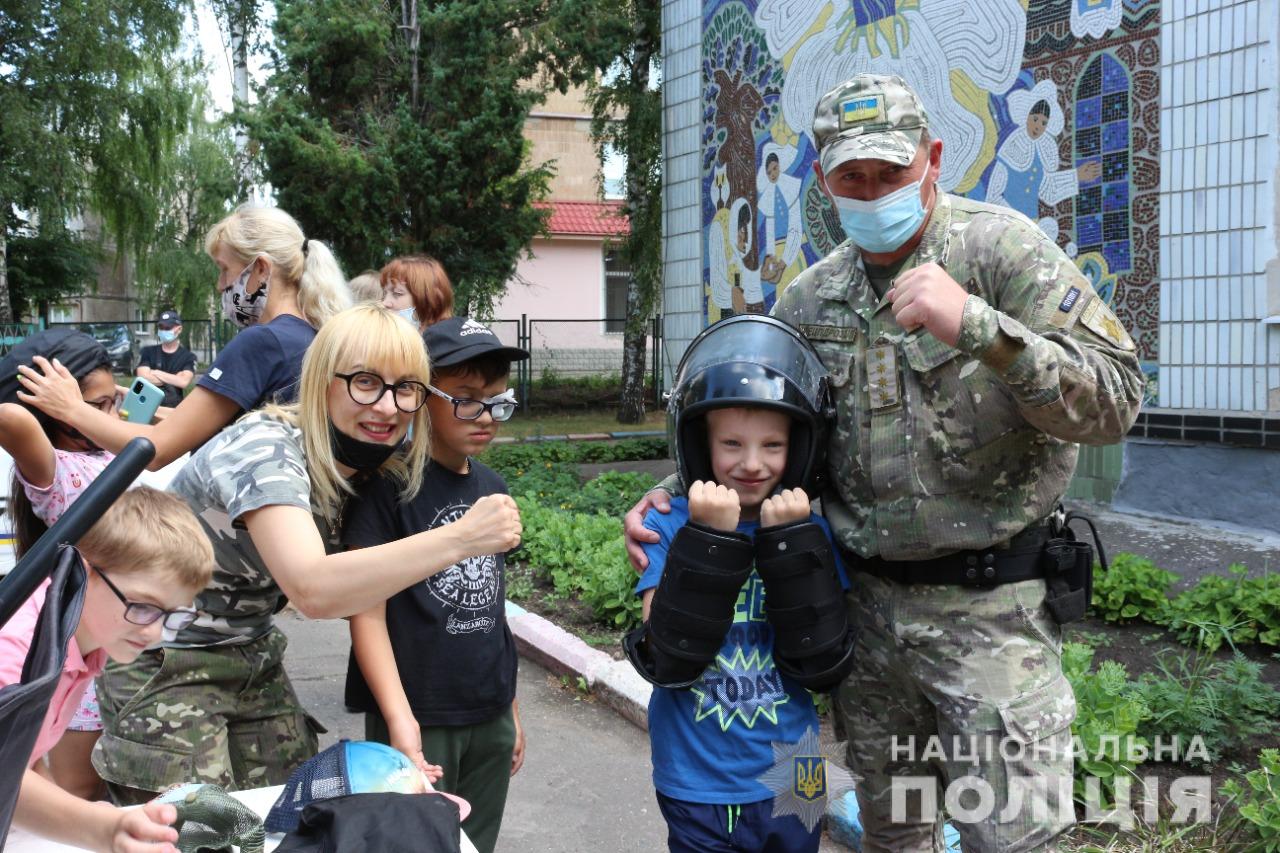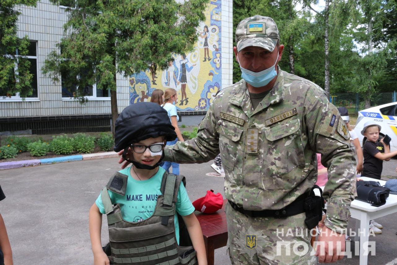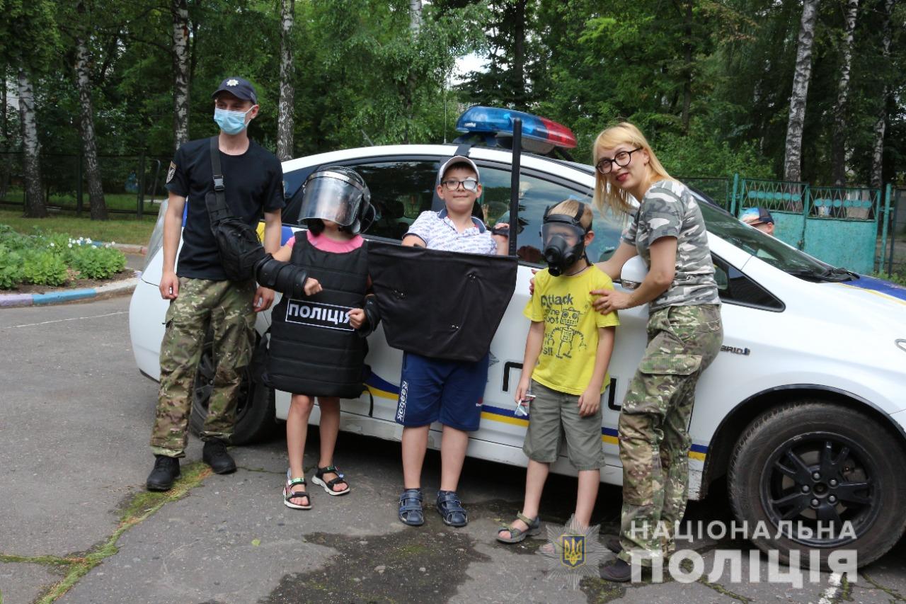 Затим поліцейські роти «Суми» Тарас Назарчук, Євген Ігуменов та Ольга Зайцева продемонстрували дітям виставку спеціальних засобів захисту поліцейських, якими правоохоронці користуються у своїй повсякденній службі, підготували насичену показову програму, продемонстрували прості прийоми самозахисту. А ще розповіли, як безпечно провести літо та не потрапити у різного роду неприємні ситуації.
