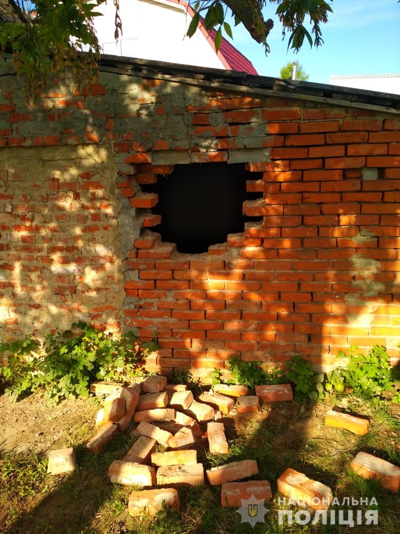 Негайно виїхавши на вказане місце, поліцейські встановили: зловмисник проник всередину магазину шляхом пошкодження стіни підсобного приміщення та внутрішньої стіни магазину і таким чином виніс з середини продукти харчування, алкогольні напої та грошові кошти в сумі майже 900 гривень. За попереднім підрахунком сума завданих зловмисником збитків становить майже 5 тисяч гривень.