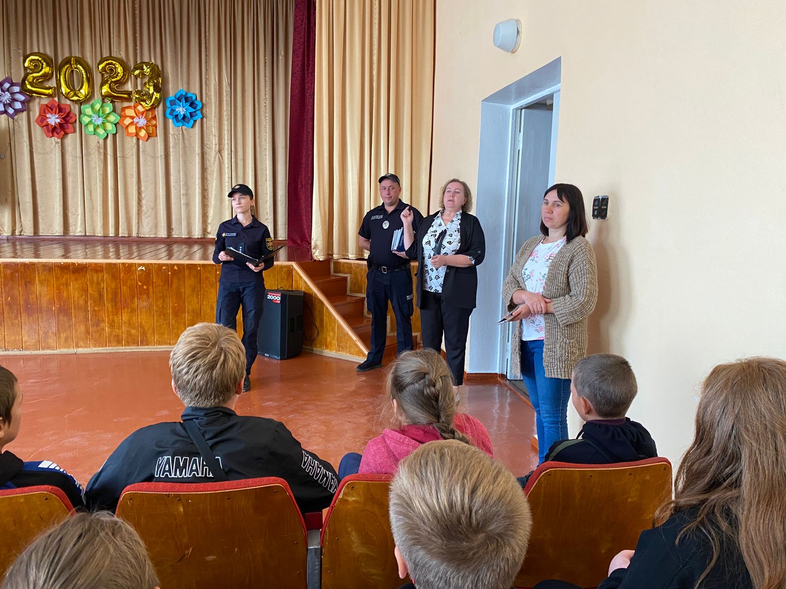 Поліцейський розказав присутнім про недопущення вчинення кримінальних та адміністративних правопорушень, також нагадав правила дорожнього руху для пішоходів. Наголосив на небезпечності розваг поблизу проїзної частини.