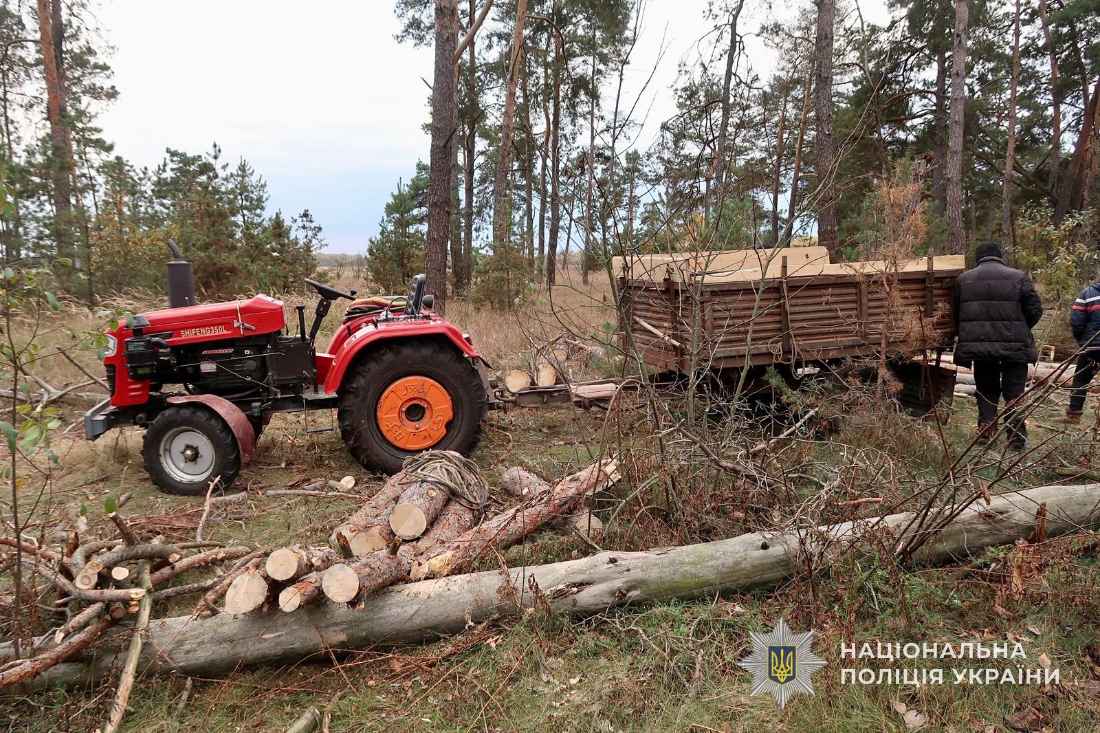 Як встановили правоохоронці, мешканець села Чорноплатове, на власному тракторі з причепом прибув на територію природно-заповідного фонду та не маючи відповідного дозволу, став випилювати дерева. На момент виявлення поліцейськими, чоловік вже спиляв 6 дерев породи «сосна» та розпиляв їх на частини для подальшого транспортування.