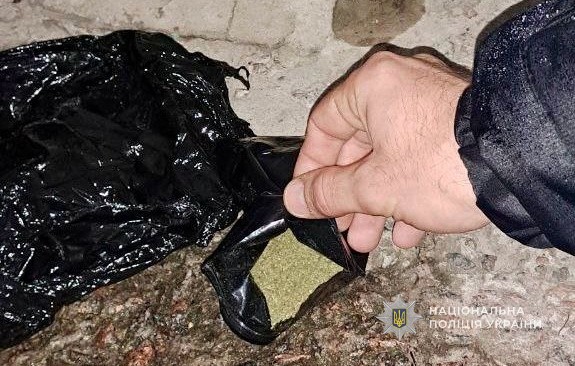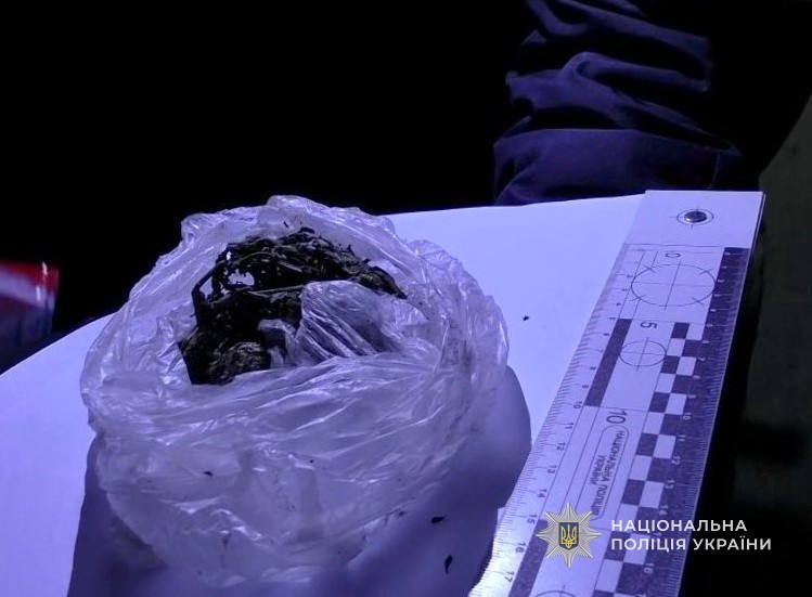 У ході огляду поліцейські виявили у зловмисника саморобний пристрій для куріння та поліетиленовий пакет з речовиною рослинного походження зовні схожу на канабіс. Зі слів правопорушника, він зберігав наркотики для власного вживання.