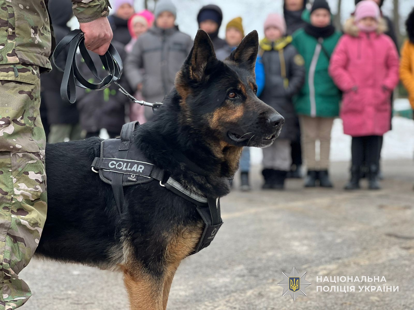 Далі інспектор кінологічного центру розповів в яких випадках залучаються службові собаки: під час проведення оглядів місця подій, пошуку та затримання злочинців, виявлення вибухонебезпечних речовин, зброї, наркотичних засобів, установлення місцезнаходження безвісти зниклих осіб. А потім разом зі службовою собакою Пандою продемонстрували свої вміння та злагоджену роботу.