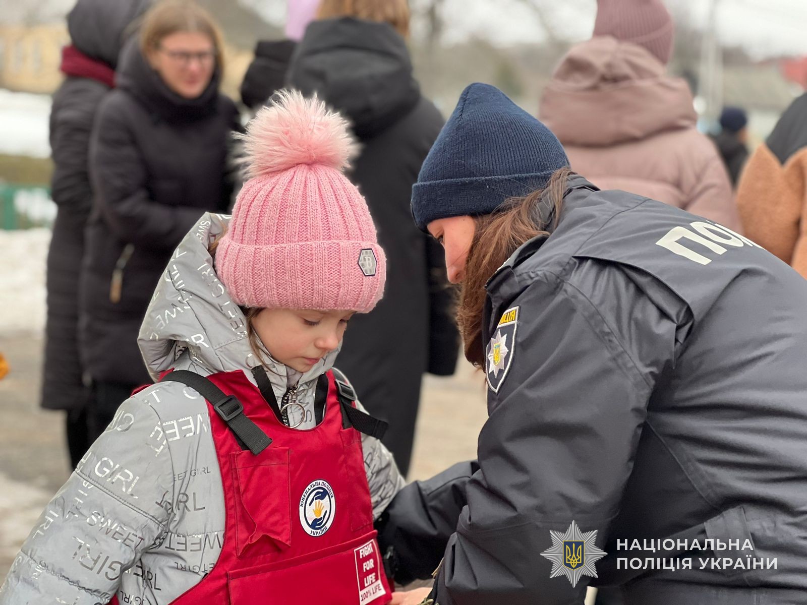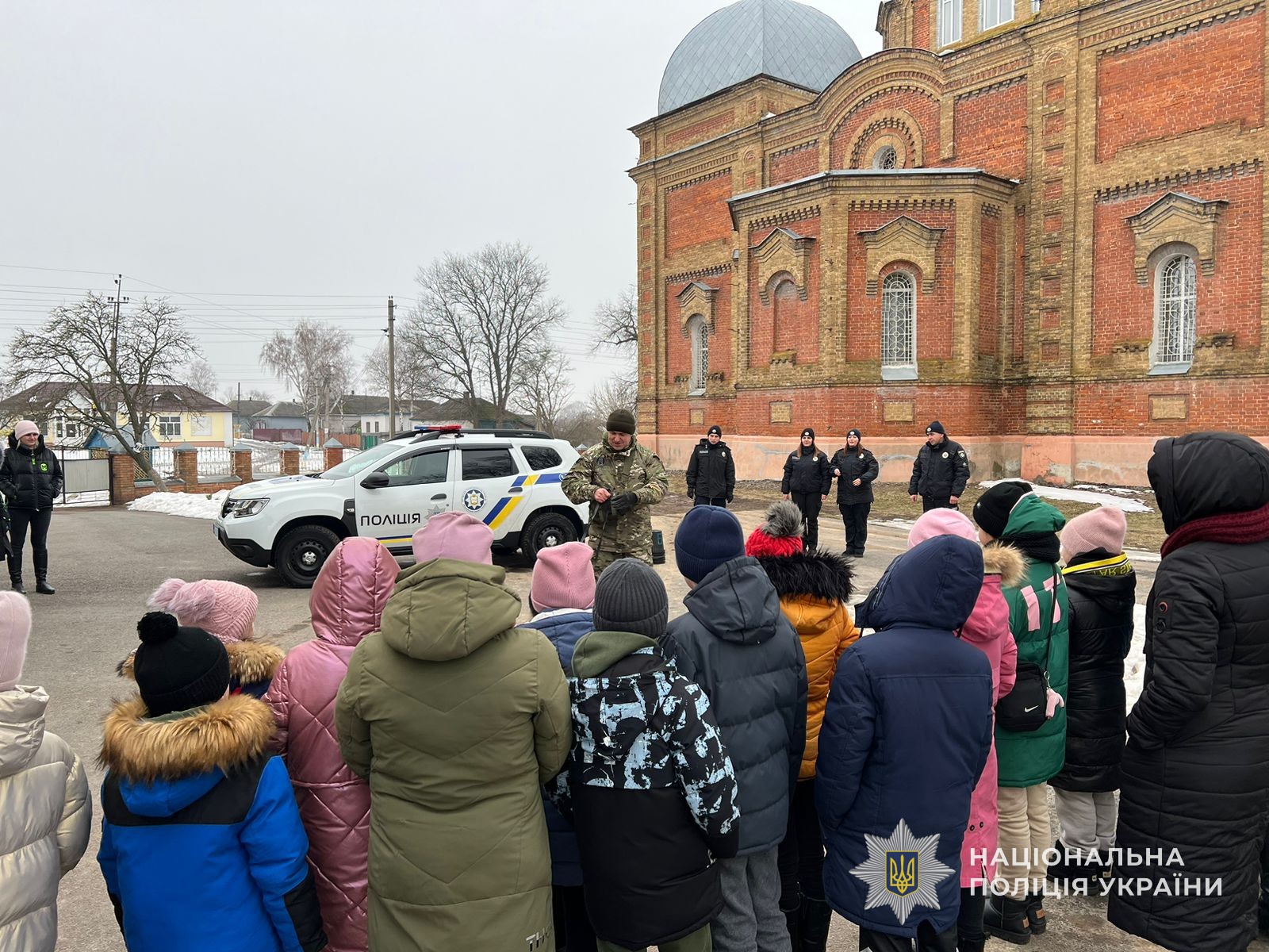 Поліцейський офіцер громади ознайомив дітей зі своїм службовим автомобілем та показав поліцейське екіпірування. Дітвора із захватом розглядала транспортний засіб, вмикали сирену та розмовляли в гучномовець. Також, бажаючі приміряли дитячі засоби захисту – шолом та бронежилет.