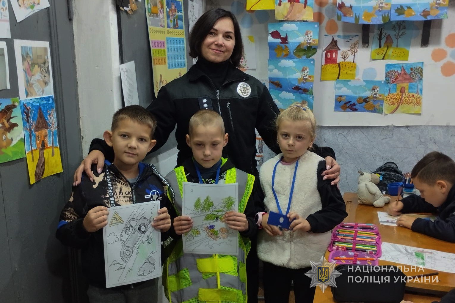 Поліцейська нагадала значення деяких знаків, розповіла про безпечний перехід проїжджої частини в місцях де не встановлений світлофор. Також офіцерка пояснила чому так важливо використовувати світловідбиваючі елементи на одязі в темний час доби.
