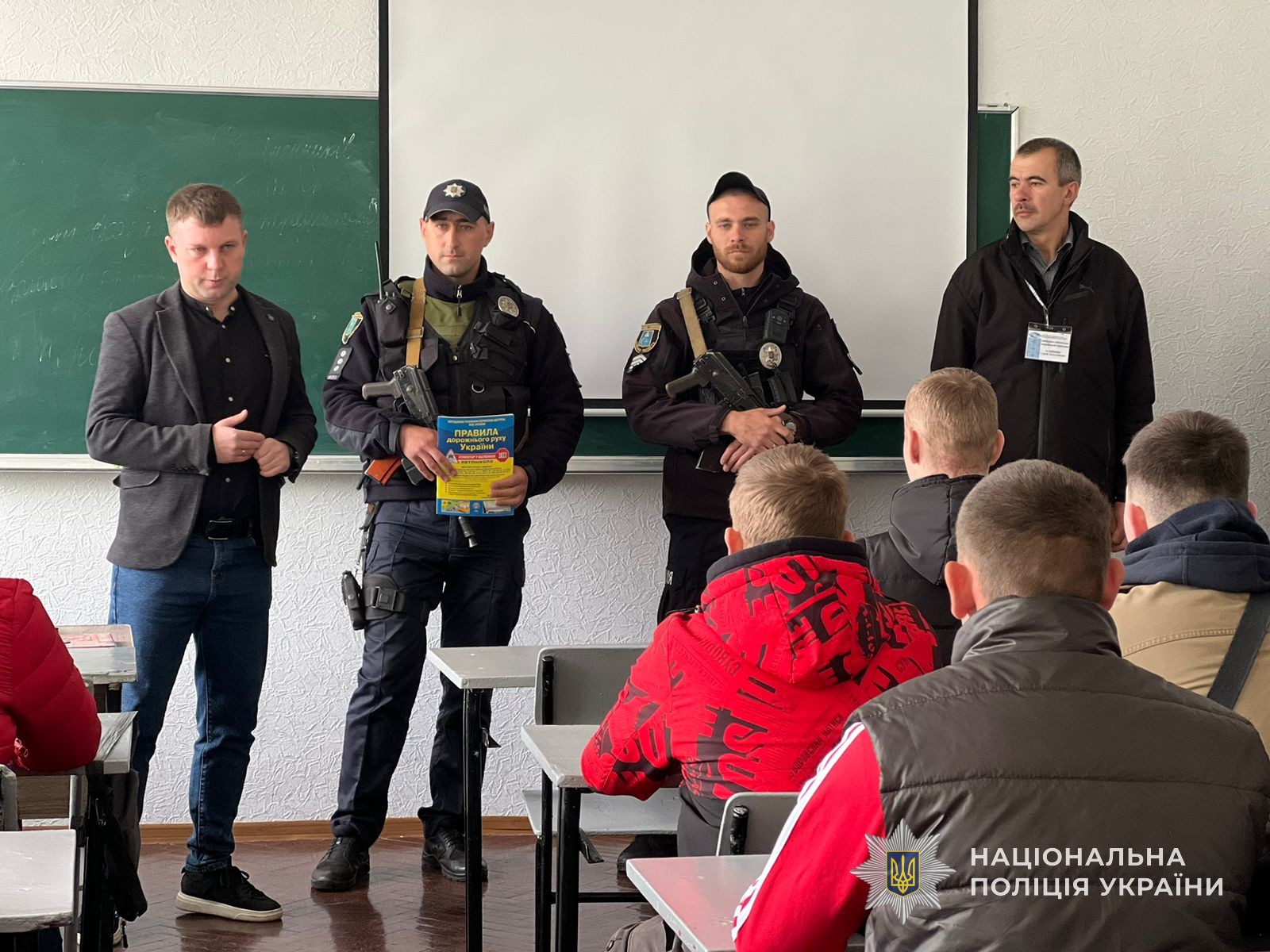 В рамках Всеукраїнського тижня безпеки дорожнього руху поліцейські зустрілись зі здобувачами освіти та нагадали основні правила дорожнього руху та розповіли про відповідальність яка загрожує за їхнє порушення.