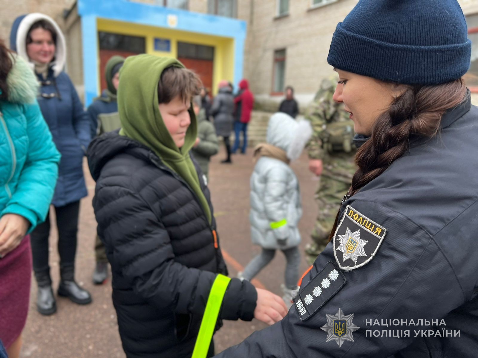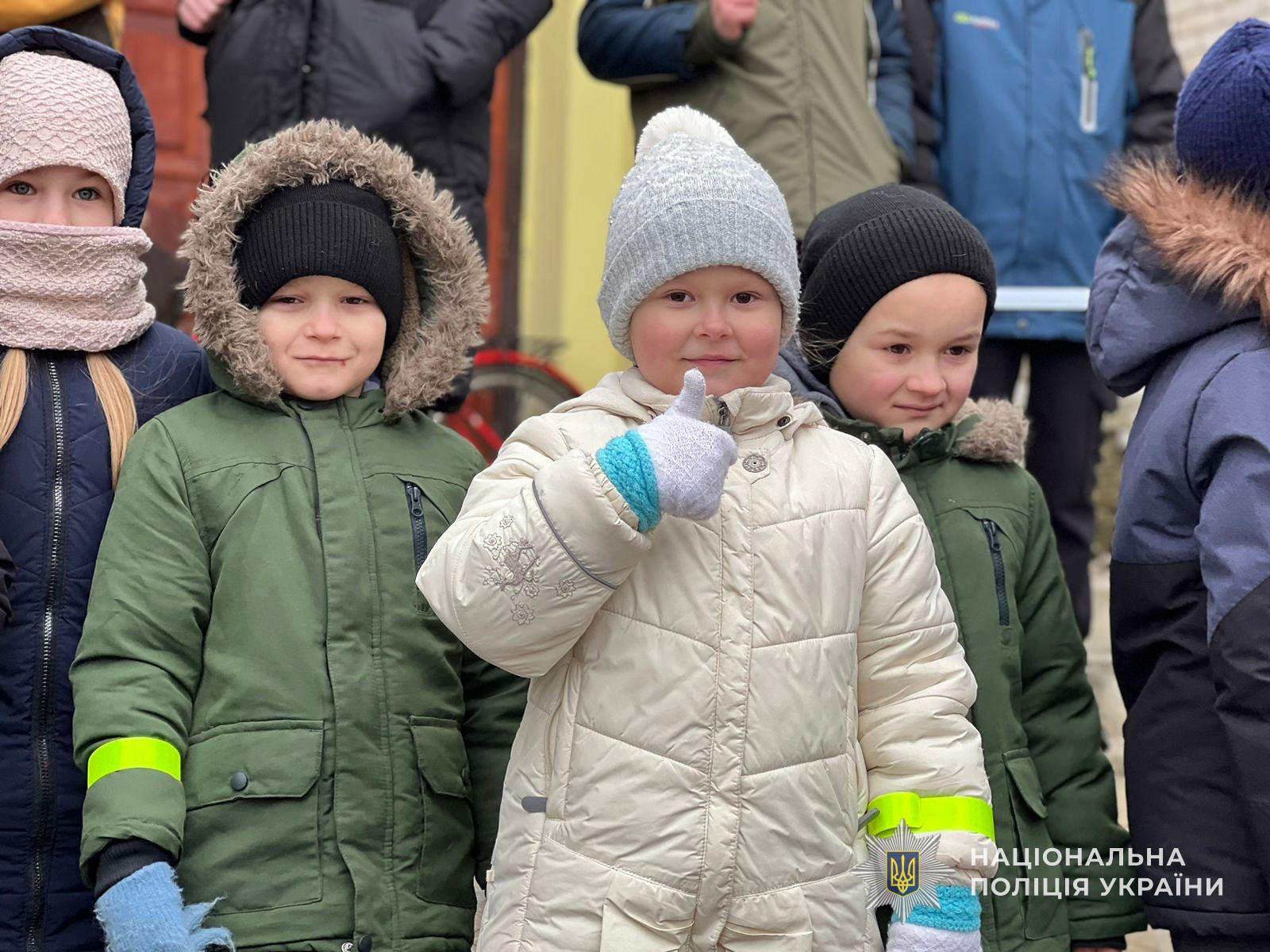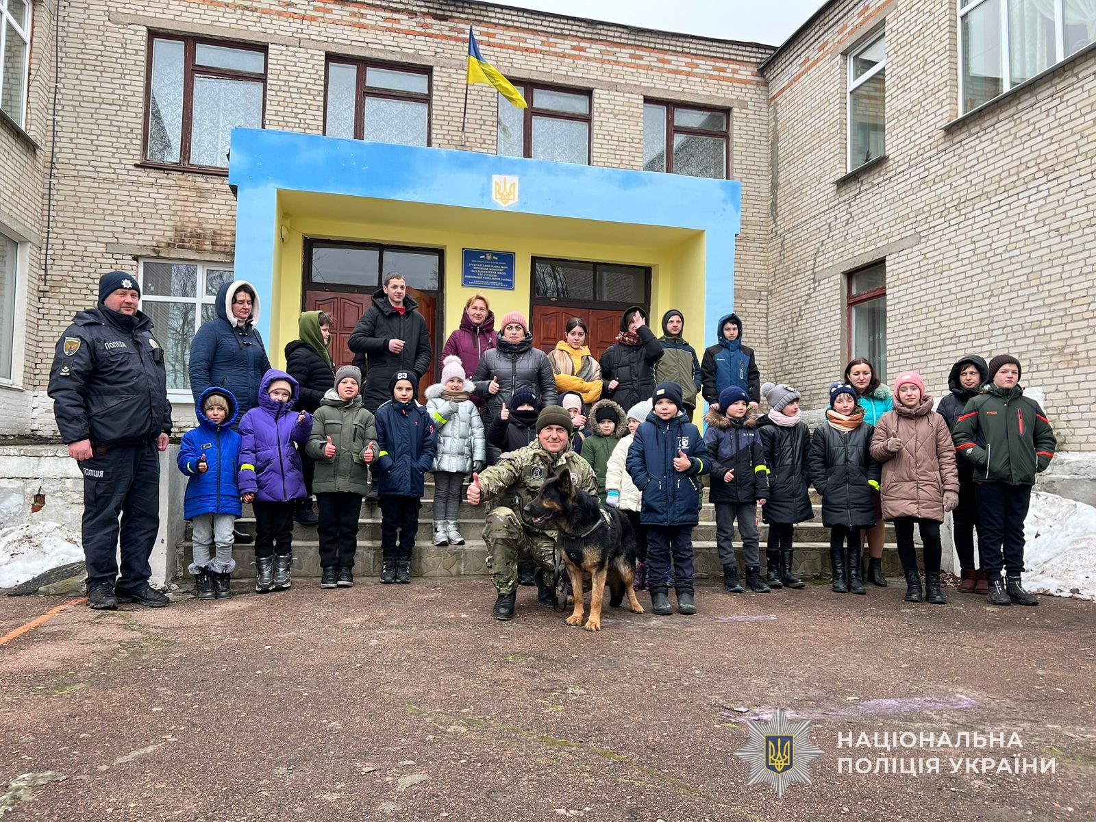 Діти приймали активну участь у бесідах та запропонованих інтерактивах. Всі учасники отримали купу корисної інформації та позитивні емоції. Наприкінці учні отримали від поліцейських флікери, аби бути помітними у темноті на дорозі. Ну і звісно, не обійшлось без пам’ятних знімків з правоохоронцями та службовим псом.