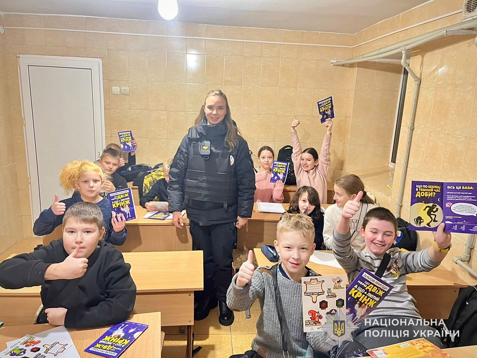 Цього разу інспекторка обговорила зі школярами про безпечне зимове дозвілля. Поліцейська звернула увагу на прогулянки біля замерзлих водойм та наголосила, що наразі крига зовсім тонка, тому категорично заборонено заходити на неї задля уникнення падіння у холодну воду. Також пояснила, як діяти, коли ти все ж провалився під лід.