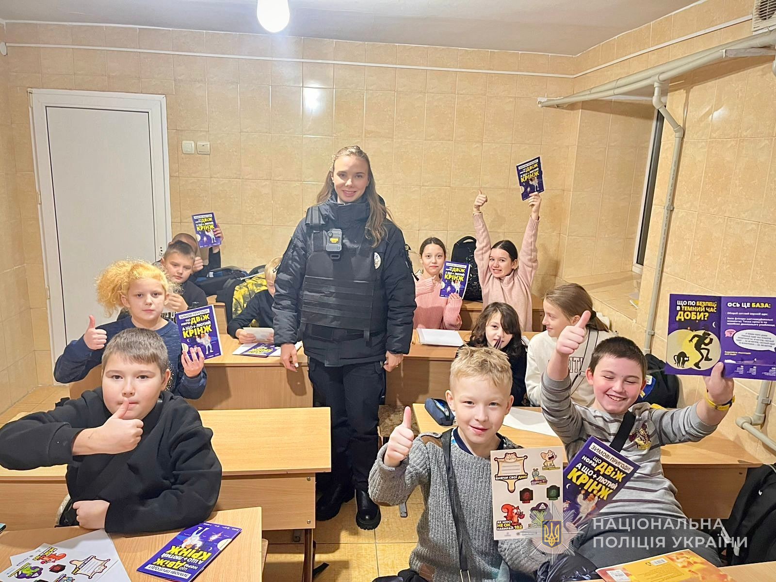 Наприкінці поліцейська роздала учням яскраво ілюстровані пам’ятки, в яких коротко та зрозуміло викладено алгоритм дій в різних надзвичайних ситуаціях.