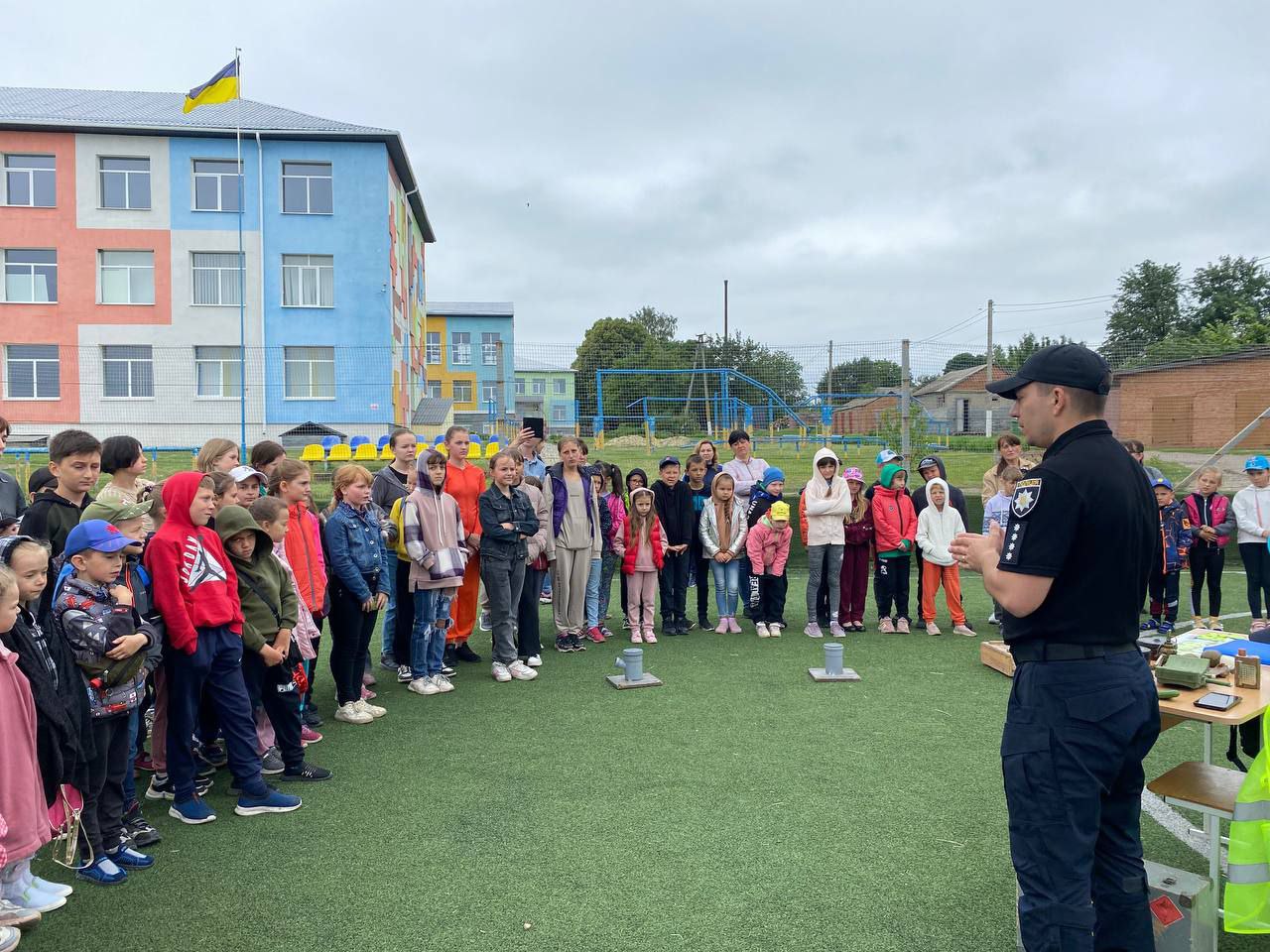 Поліцейські розповіли малечі про правила безпечної поведінки під час літнього відпочинку. Особливу увагу приділили безпеці на водних об'єктах. Розповіли про обов’язкове дотримання правил дорожнього руху, обговорили тему шкідливих звичок та яку шкоду для здоров'я вони в собі несуть. Крім того працівники поліції нагадали учням як потрібно діяти під час сигналу «Повітряна тривога».