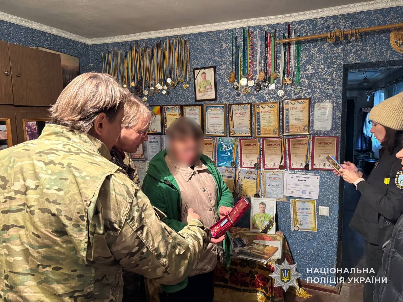 Окремо благодійники разом із правоохоронцями навідалися до родини загиблого Сергія Проневича – спортсмена та партизана, життя якого обірвали російські окупанти. Родину героя підтримали словами вдячності за його мужність і боротьбу за Україну, а також передали їм необхідну допомогу.