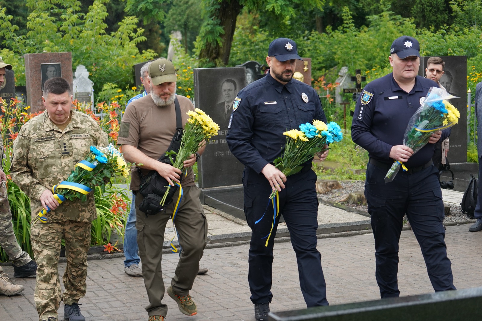 На початку очільник поліції Сумщини Петро Токар разом з представниками обласної, міської влади, військовими та жителями міста поклали квіти до Меморіалу героям антитерористичної операції й склали шану загиблим воїнам України.