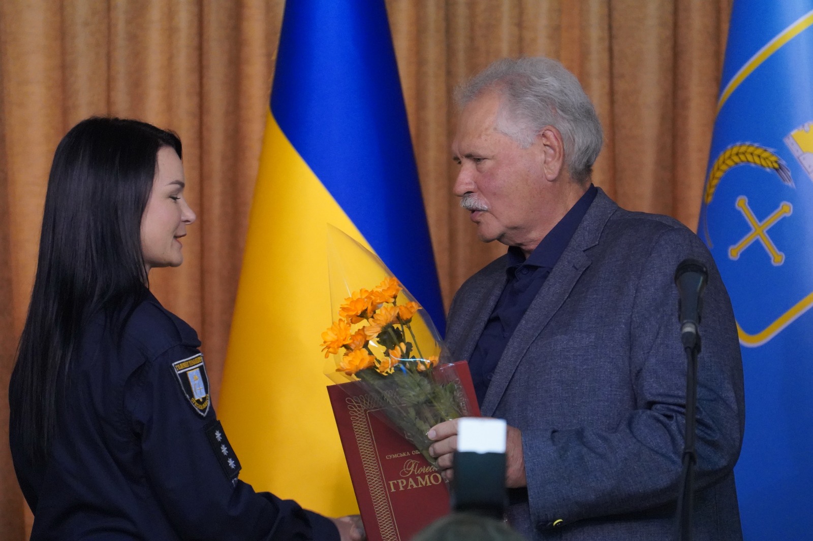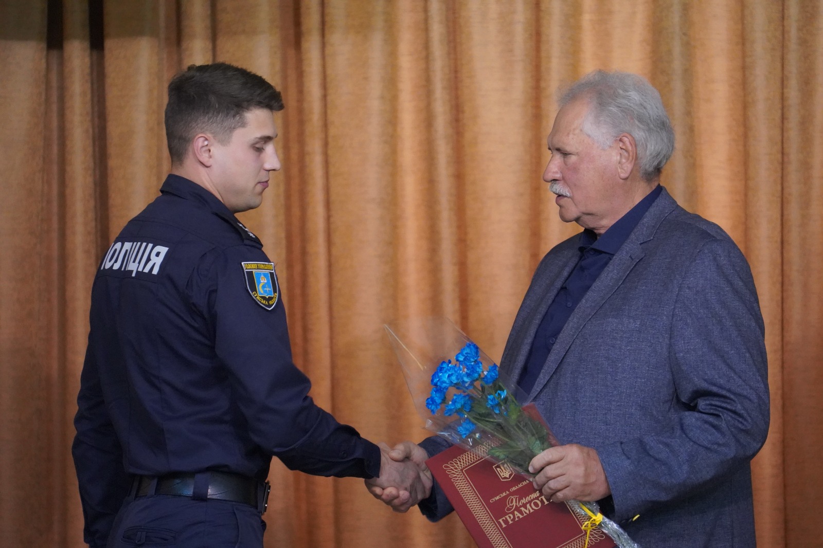 Після цього в Конгрес центрі Сумського державного університету відбулося нагородження кращих поліцейських Головного управління Національної поліції. За сумлінне виконання службових обов’язків, вагомий внесок у справу боротьби зі злочинністю та високий професіоналізм голова Сумської обласної ради відзначив грамотою співробітників поліції.