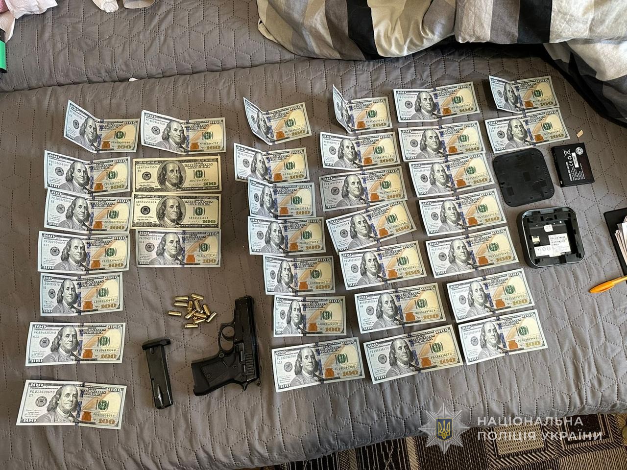 У вівторок, 6 лютого 2024 року, у фігурантів кримінального провадження правоохоронці провели 24 обшуки, під час яких виявили та вилучили предмети, схожі на зброю та боєприпаси, наркотичні речовини, документацію, близько 100 тис. грн, 2 тис. 200 євро та 22 тис. 400 доларів США.