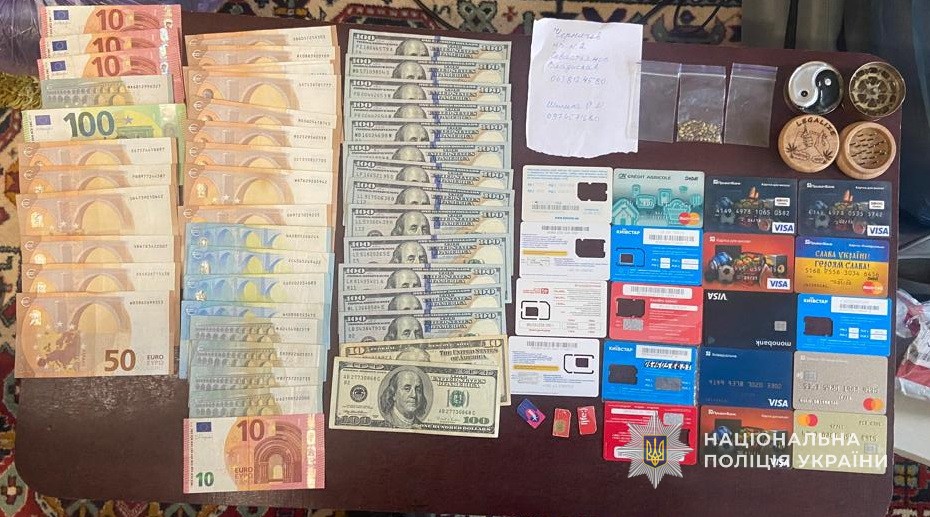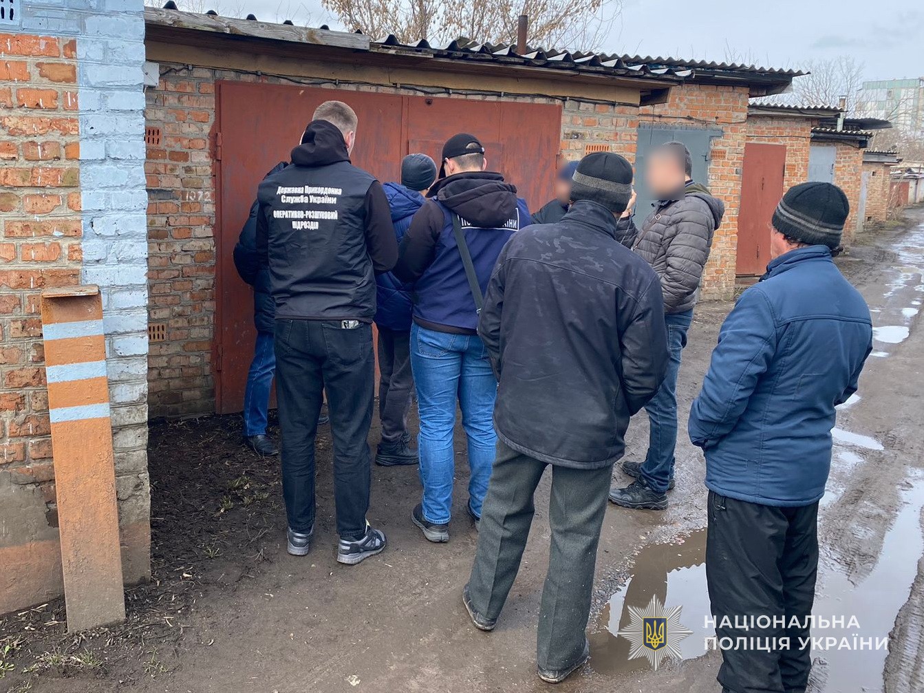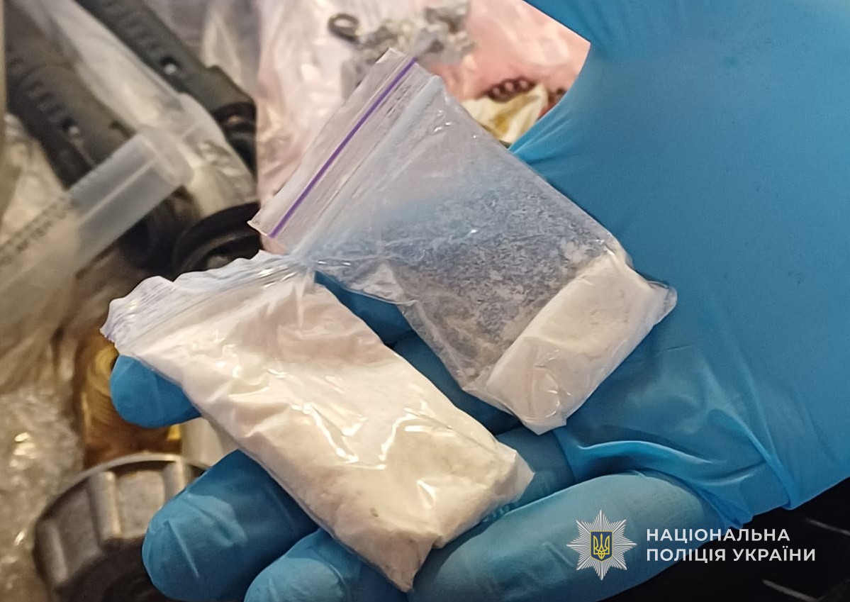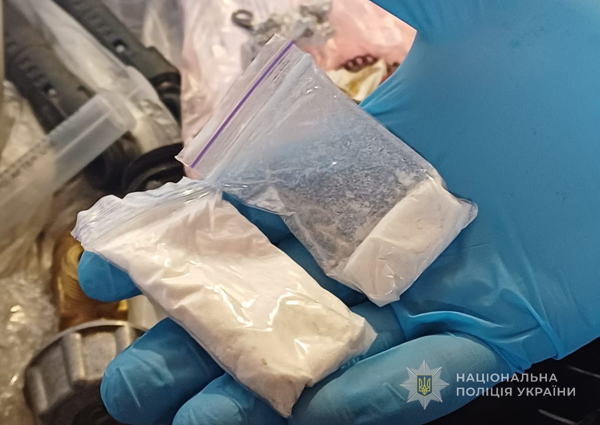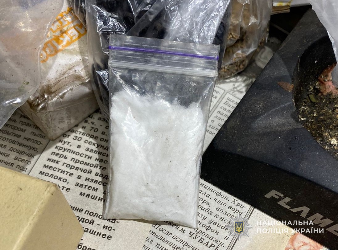 Під час санкціонованого обшуку в гаражному приміщення та за місцем проживання підозрюваного, правоохоронці виявили та вилучили зіп-пакети з порошкоподібною речовиною білого кольору, ємності, готівку та банківські картки.