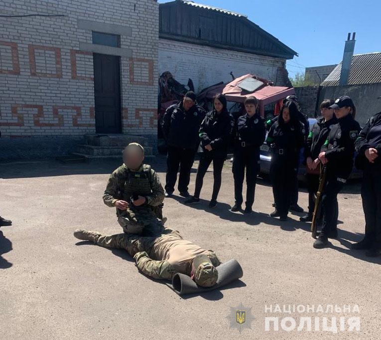 Під час занять поліцейські відпрацювали різні техніки затримання озброєного правопорушника, розглянули затримання злочинця у парі у групами та розібрали алгоритм надання домедичної допомоги.