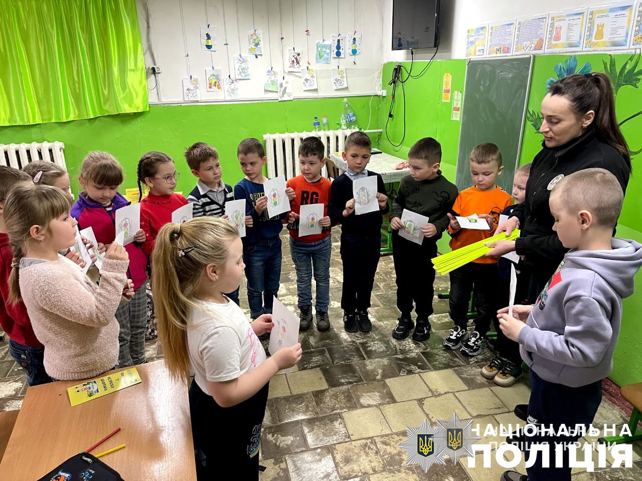 Правоохоронці провели вікторину, яка потребувала відповідей на питання, що полегшать розуміння та закріплення знань про безпечну поведінку на дорозі. А в кінці заходу кожна дитина отримала корисні подарунки від поліцейських, які стануть допоміжними під час перебування на дорозі у темряві.