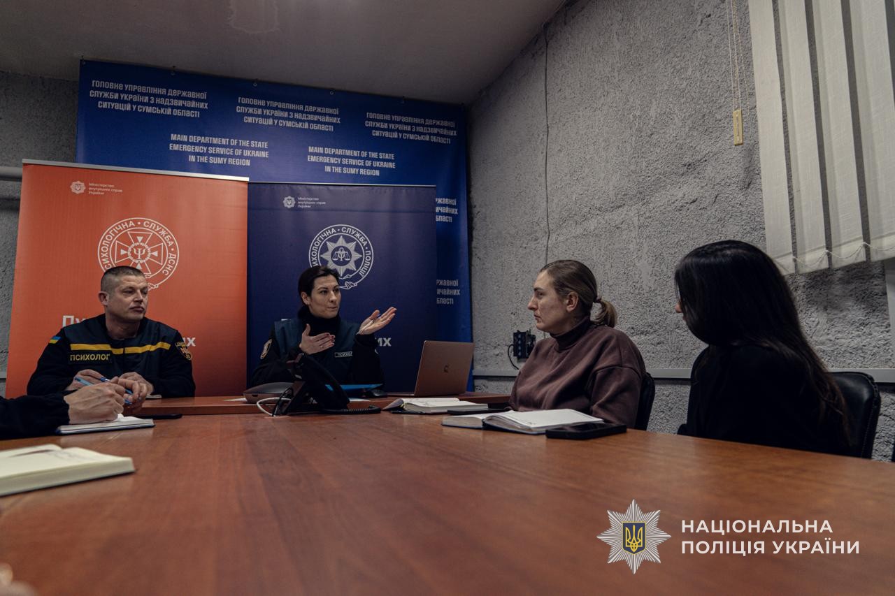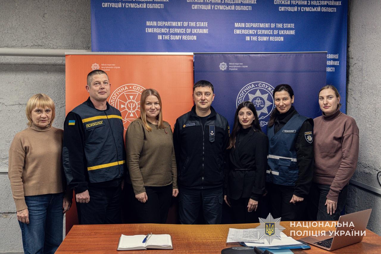 У межах проєкту «Пункт психологічних практик» відбулася робоча зустріч психологів системи МВС. Захід об’єднав фахівців Головного управління Національної поліції в Сумській області, Національної гвардії України, Державної служби України з надзвичайних ситуацій, Державну прикордонну службу України та Управління поліції охорони.